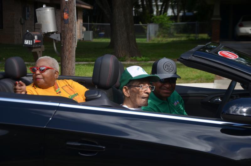Juneteenth Parade Grand Marshal Harvey Miller and constable David Peterson drive by.
