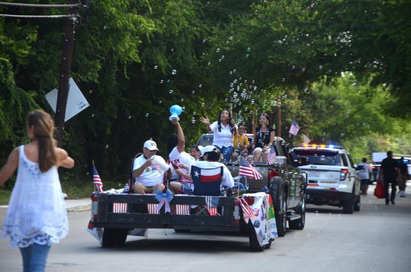 Bubbles rise up from the float of Hays County Justice of the Peace 1-2 Maggie Hernandez-Moreno, and Hays County Precinct 1 Commissioner Debbie Gonzales Ingalsbe.