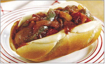 Big Al’s Hot and Sweet Sausage Sandwich Makes 8 to 10 servings 4 to 5 pounds hot Italian sausage links 1 jar (26 ounces) spaghetti sauce 1 large Vidalia onion (or other sweet onion), sliced 1 green bell pepper, cored, seeded and sliced 1⁄4 cup packed dark brown sugar Italian rolls, cut in half Provolone cheese, sliced (optional) 1. Combine sausages, spaghetti sauce, onion, bell peppers, and brown sugar in slow cooker. Cover; cook on low 8 to 10 hours or on high 4 to 6 hours.