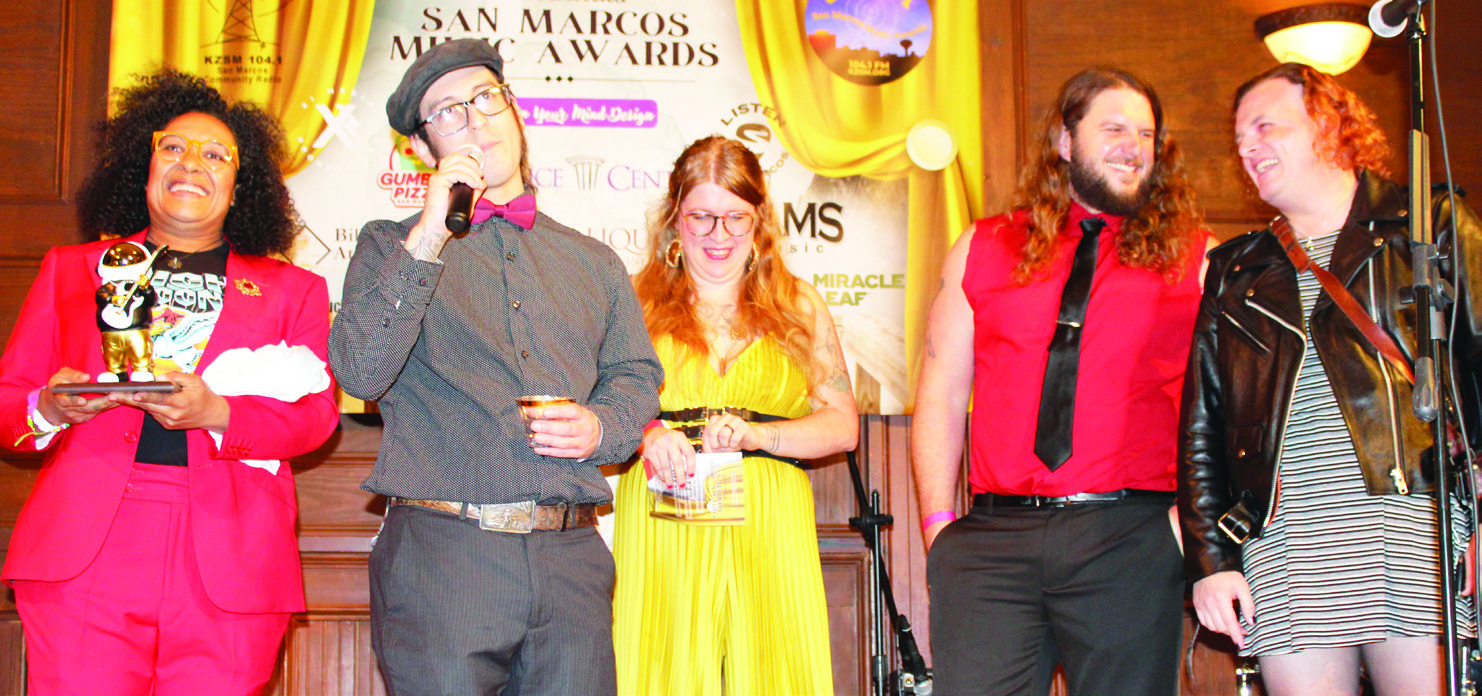 Best New Artist went to Loose Screws and Rusty Hearts as well as Best Country. Best Artist went to Our Last Daze as well as Best Rock and Best Live Performance. Best Singer/Songwriter went to Jack Henry. Best Classical went to the San Marcos High School Jazz Band, which was accepted by the Band Director Hector Ramirez. Best Blues went to Rock Bottom String Band. Best Funk went to Funkatron. Best Reggae went to Sugar Waves. Best Hip Hop went to Chief and TheDoomsDayDevice as well as Best DJ. Chief won a third award along with Kinder for Best Album for their collaboration on “Small Bites.” Best R&B went to The Hot Pipes. Best Latin went to Los Gatos 512. Best Pop went to The Trips as well as Best Single. Best Vocalist went to Will Riley. Best Producer went to David Beck. Best Promoter went to Listen San Marcos. Best Radio Personality went to KZSMs own Rob Roark, aka “The Wiz,” who had this to say about the station, “that’s what we build through our team — community.” Best Live Music Venue went to Tantra.
