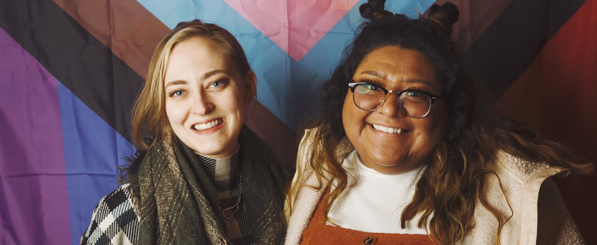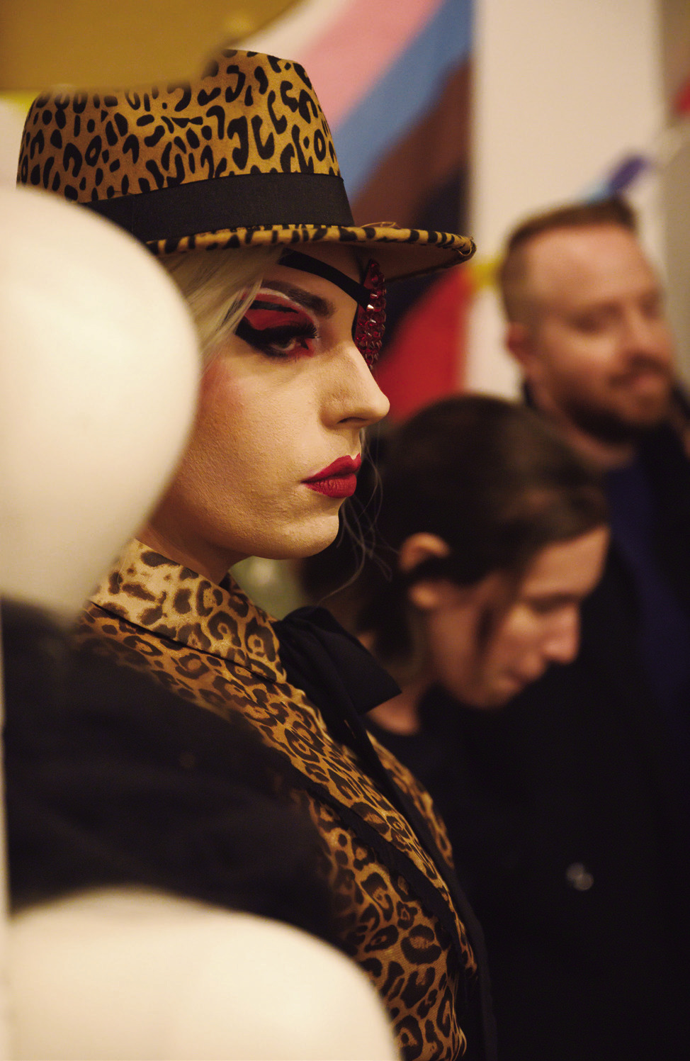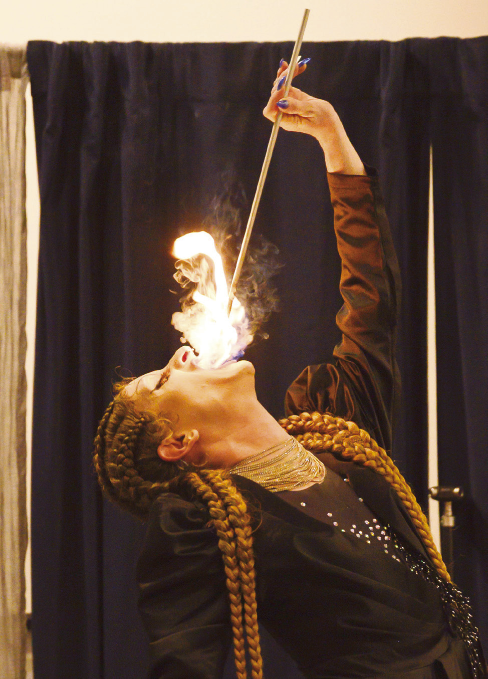 Above, James Hardin, host of “Queer Right Here” poses with local artist Karly Schlievert at the Valentine’s Day event. Below, local performer Jinx the Minx wowed the crowd with fire eating, showcasing the wide variety of talents featured at the event. Photos provided by Christopher Hall