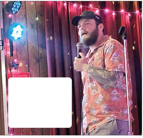 Mitchell McMullen keeps the crowd laughing while hosting Punchlines at The Porch, a monthly stand up comedy open mic. Daily Record photo by Rebekah Porter