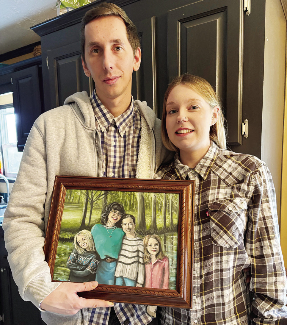 Painter Igor Babkin and wife Yelizaveta Kalinina, who answers to Liza, pose with a recently completed portrait of the Rasco family. Photos by Teresa Kendrick
