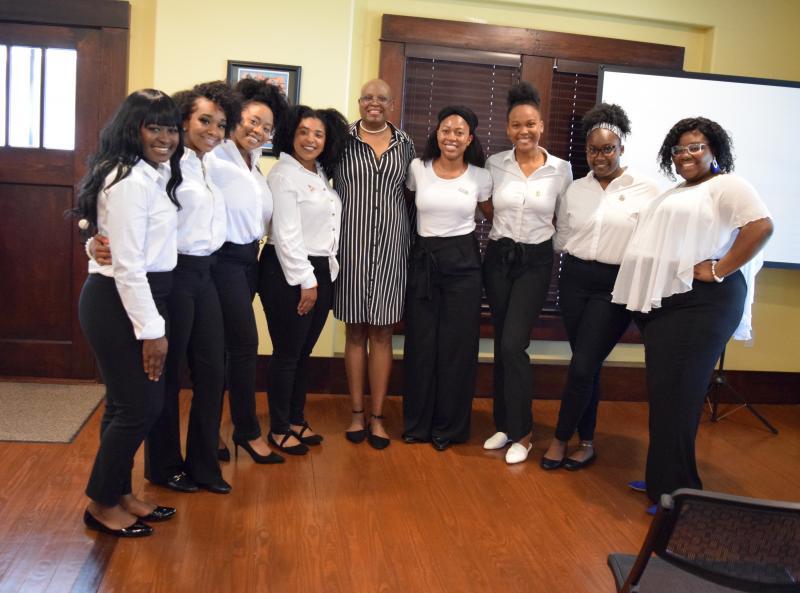 Sororities that are part of the Panhellenic Council — Alpha Kappa Alpha Sorority, Inc.; Delta Sigma Theta Sorority, Inc.; and Sigma Gamma Rho Sorority, Inc. — are pictured with the Calaboose’s new Executive Director Vanessa Westbrook, who is a part of Delta Sigma Theta Sorority, Inc.