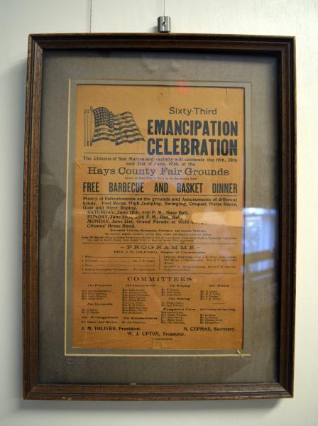 The Calaboose African American History Museum has a Juneteenth event poster from 1926 on display.