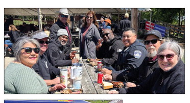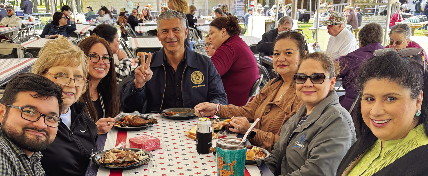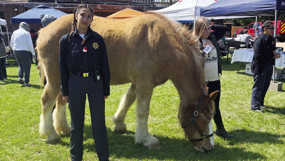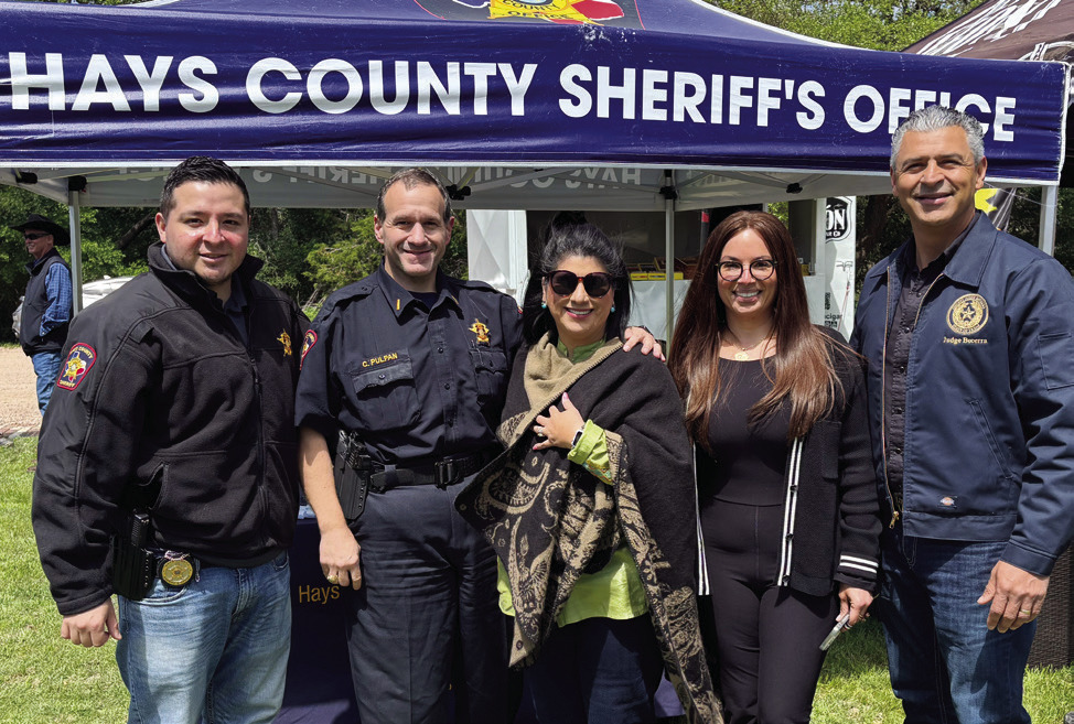 Left, Gary Cadets fill the John Deere train. Below, Hercules the therapy horse for veterans with Gary Cadet Noaly Pearson. Right, former Hays Commissioner Mark Jones with family. Photos courtesy of Randolph GoodmanAbove, Gary Job Corps Corrections Cadets and instructor Major Troy Oldbury, San Marcos Mayor Jane Hughson, Judge Beth Smith — Justice of the Peace pct. 2, Gary Job Corps Finance and Administration Director Stacy Kerns and Security Manager Eugene Edopka. Photo courtesy of Randolph GoodmanLeft, Hays County Sheriff Office Lt. Clint Pulpan, Deputy Bryant Cuadros, Hays Co. Treasurer Daphne Sanchez Tenorio, Monica Becerra and Hays County Judge Ruben Becerra. Below, county officials enjoying the Black’s BBQ Chicken. Photos courtesy of Randolph Goodman