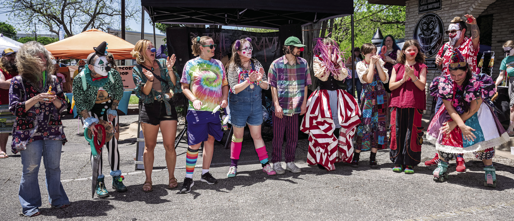 The first annual Glurpo Fest came to the Triple Six Social, located at 329 Cheatham Street, on April 13. The history of Glurpo the Clown originates at the underwater shows of Aquarena Springs that occurred during the theme park’s operation from the 1950s to 1990s. Glurpo was the underwater clown in the show. So to honor that history, a group of local clowns, dubbed the Glurpo Society, began Glurpo Fest. The event was a fun-filled and family- friendly afternoon for all clown lovers to enjoy local artisan pop-ups, a talent show, a clown parade, balloon animals and a bouncy castle. There was live music by Attic Ted and DJ Traz Ion. The community came out in droves to clown around!