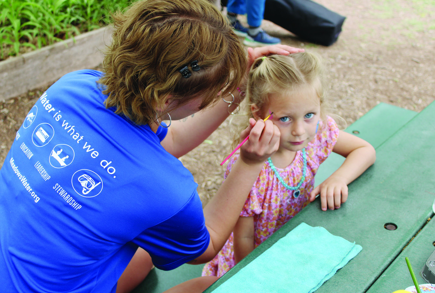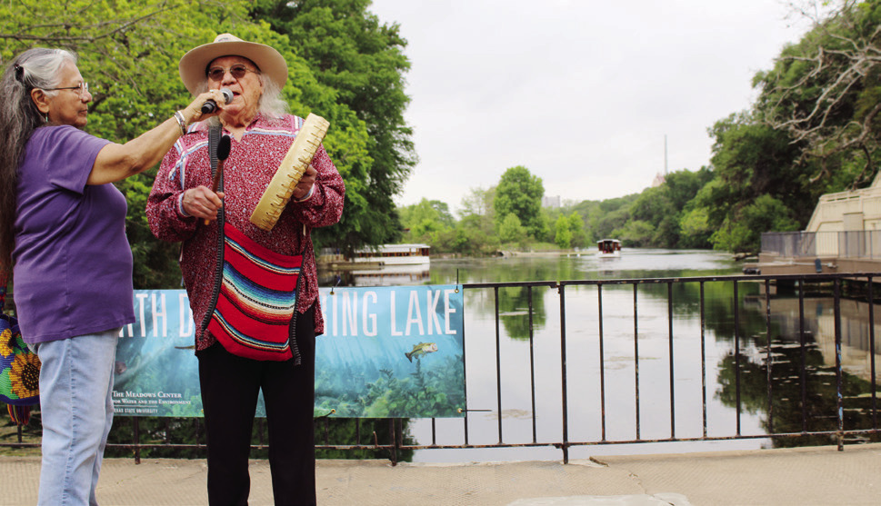 The Meadows Center for Water and The Environment hosted its annual Earth Day celebration on Saturday. There were various vendors, educational booths, face painting, a blessing from the springs and multiple informational panels on conservation- focused topics. Above, Camyle Hudson gets her facepainted. Right, is Maria Rocha and Mario Garza doing a traditional Coahuiltecan prayer at the headwaters. Rocha noted that the ritual would make it so that everyone present could receive blessings from the sacred springs. Daily Record photos by Shanon West