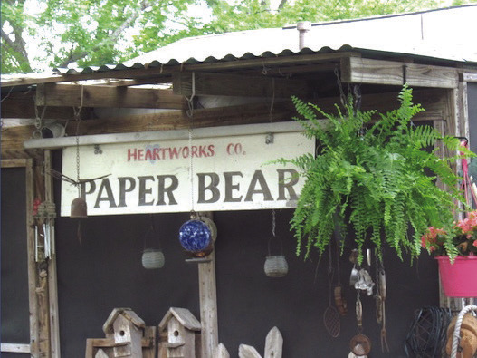 A sign saved from the old downtown store Paper Bear hangs on the lanai.