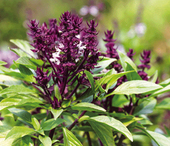 One of the most commonly grown annual herbs is basil. The common Sweet Basil has lovely white flowers while Thai Basil and Cardinal Basil have purple blossoms and spicier flavors. For most varieties of basil, it is important to trim off the blossoms if you wish to contin- ue harvesting flavorful leaves. Cardinal basil is the exception. The blossoms are actually edible, adding a slightly minty flavor as well as color to salads. The leaves of each of these varieties are a wonderful addition to soups, stews and sauces.