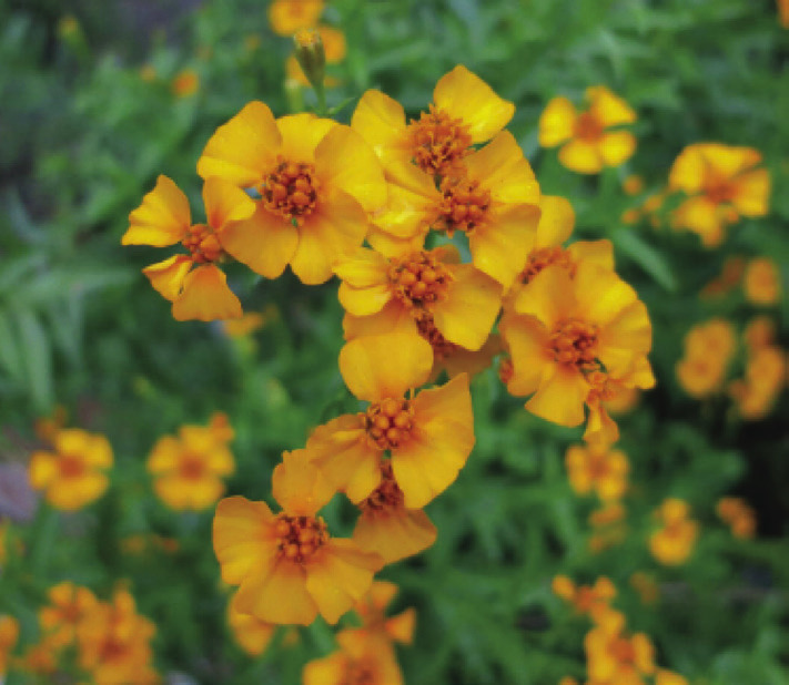 The bright gold flowers of the Mexican Mint Marigold, also known as Texas Taragon, add color to the garden from summer to first frost. This perennial herb has the scent of tarragon with a hint of anise and is used to flavor fish and chicken.