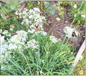 Another easy to grow herb is Garlic Chives. The bulbs, stems and blossoms of this perennial herb are all edible, and its white flowers are very attractive to butterflies and bees. Chives are used in cooking the same way you would use green onions.