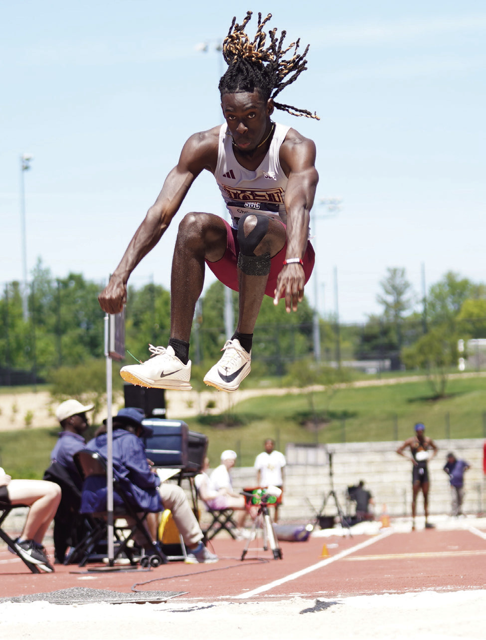 Junior Chris Preddie took home his third consective conference gold medal in the long jump. Photo submitted by Texas State Athletics