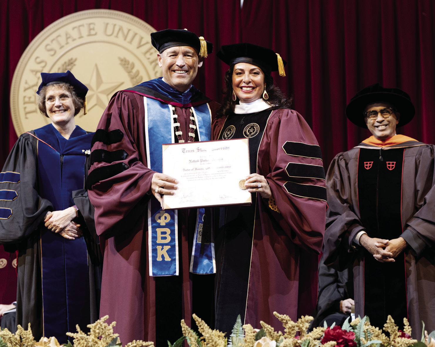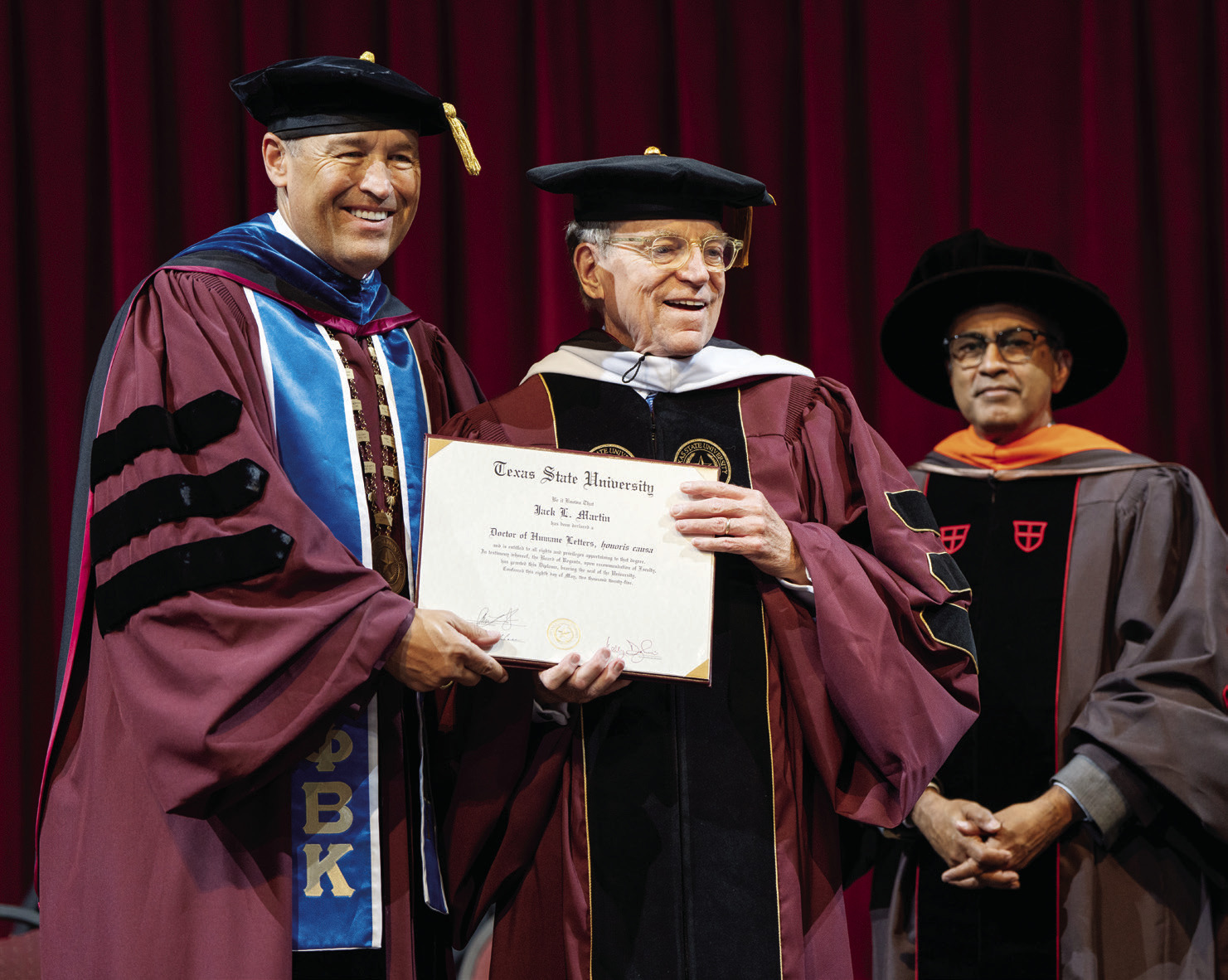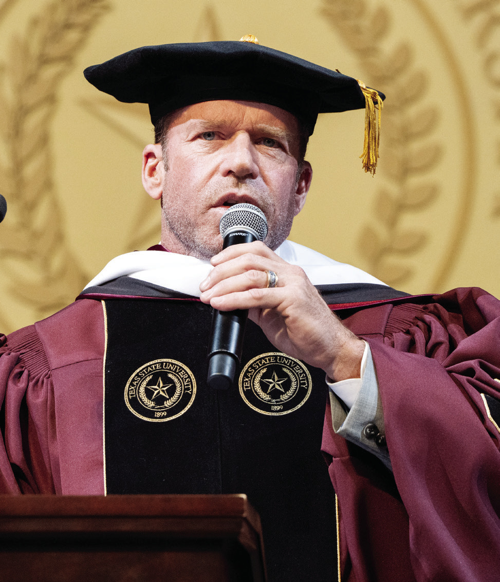 The first honorary Doctorate was awarded by Texas State University in 1962 to Lyndon Baines Johnson during his time as vice president of the United States. One can explore the full list of the 22 honorary degree recipients online at txst. edu/commencement/facstaff/ honorary-degrees. html