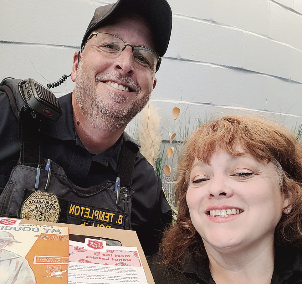 The Salvation Army had its annual Donut Day in which it provided donuts to first responders to thank them for their hard work keeping communities safe. The Salvation Army San Marcos partnered with H-E-B on Thorpe Lane and Hopkins Street. H-E-B donated 20 dozen of the donuts that were passed out. Salvation Army delivered to Kyle, Buda, Dripping Springs, Wimberley and San Marcos and delivered a total of 35 dozen donuts to area first responders. Salvation Army Board Members, staff and volunteers participated in the distribution.