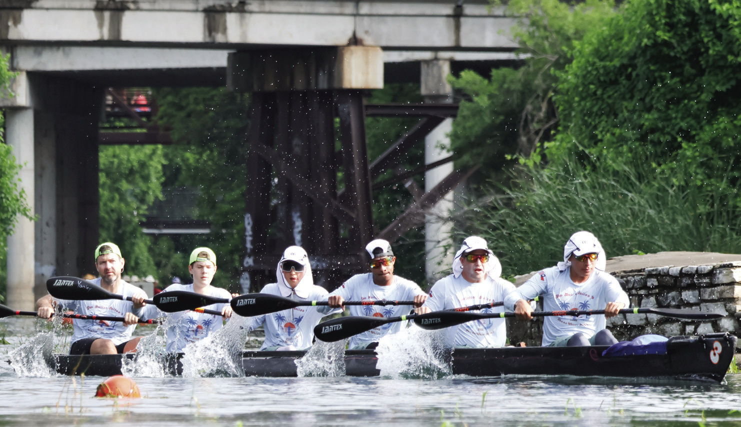 “In addition to the length, the challenges include whitewater rapids, multiple portages, and the relentless, soul-sapping Texas heat,” stated Larry Rice, in July 2009 Canoe & Kayak Magazine and as referenced on the TWS website. “Com- petitors have four days and four hours to paddle from San Marcos, in the center of the state, to the shy little town of Seadrift on the Gulf Coast. There is no prize money for the winners; just Texas-size bragging rights for the finishers.”