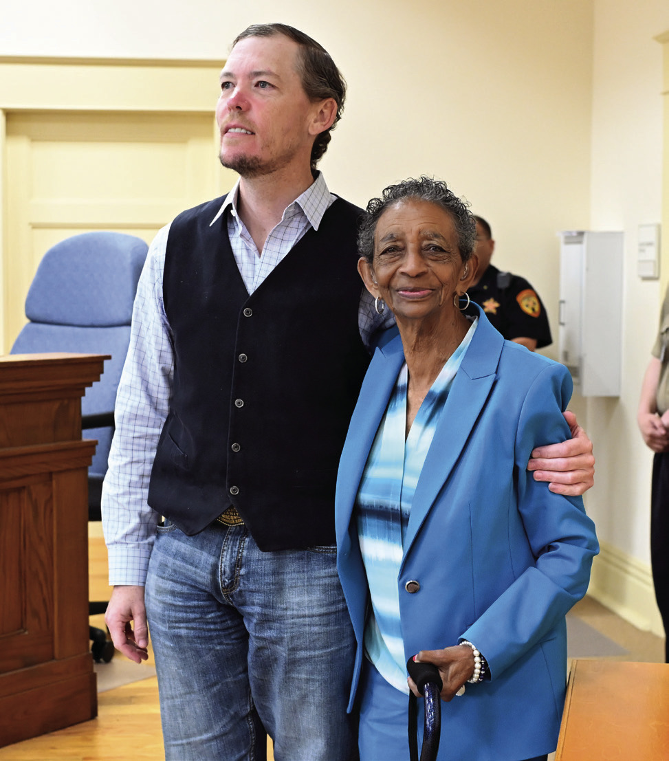 Above, Hays County Commissioner Walt Smith and Rose Brooks, who runs the annual cake auction for Juneteenth. Left, Hays County Judge Ruben Becerra chats with Rose Brooks. Photos courtesy of Hays County