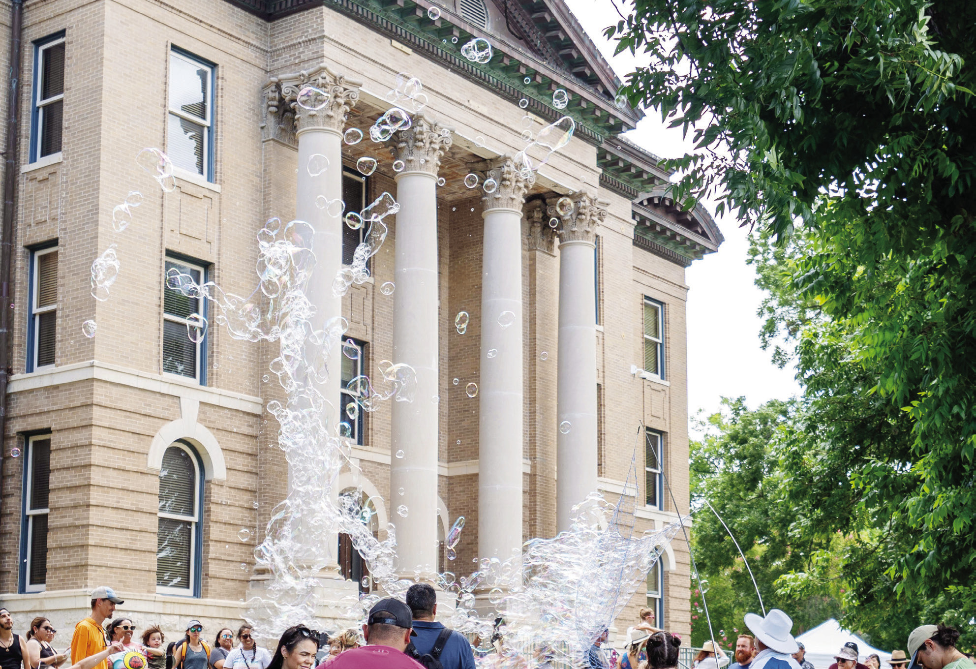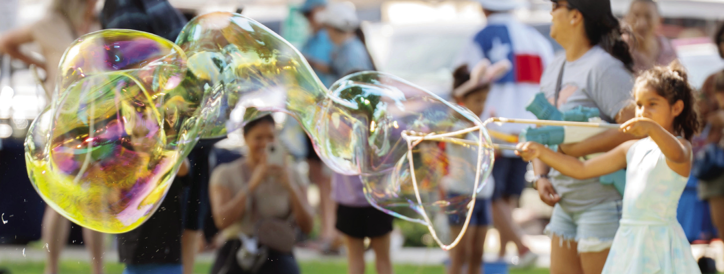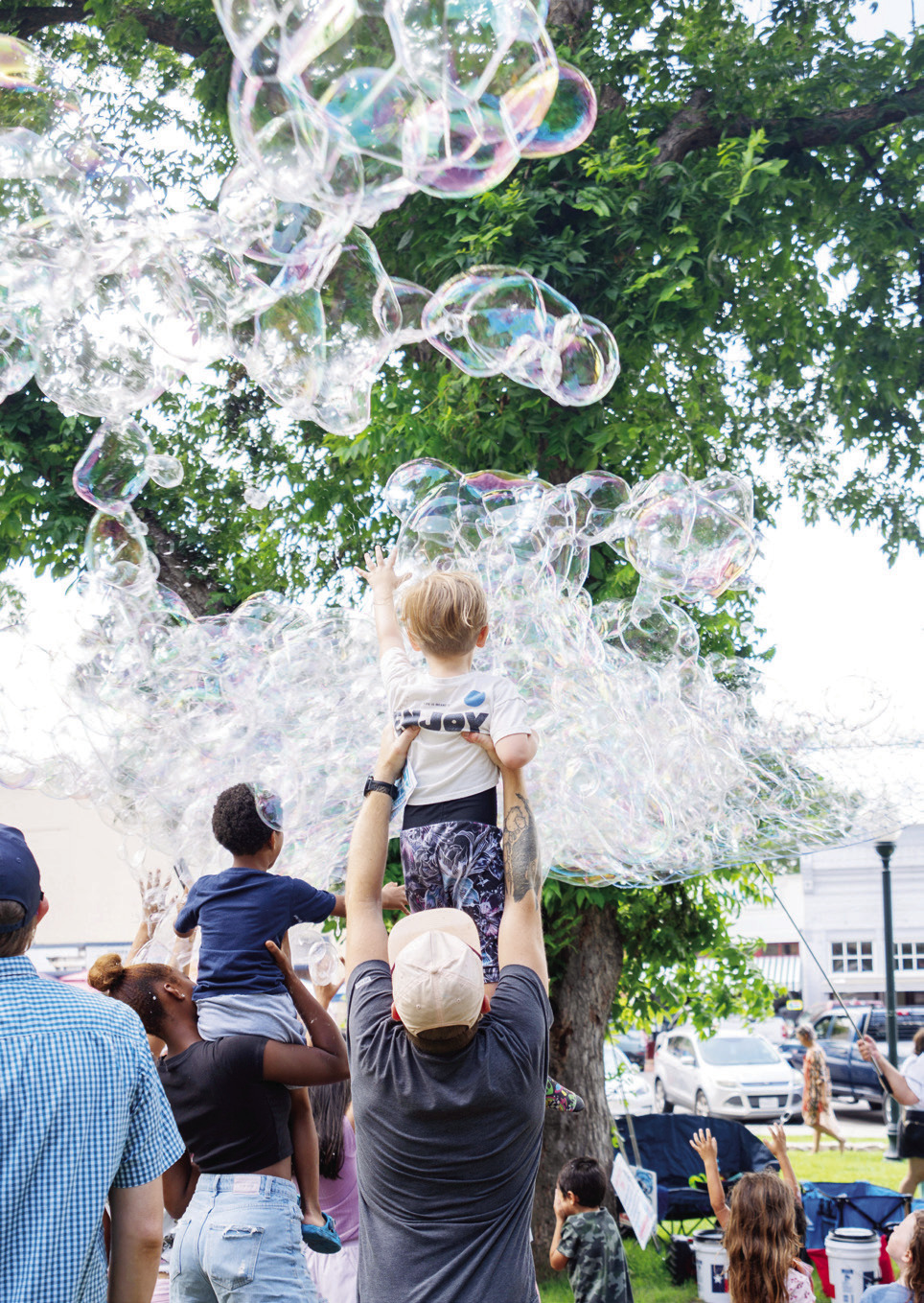 Downtown SMTX put on the most popping event of the summer. Bubble Bash was a family friendly event which featured 25 giant bubble stations, lawn games, a bubble bazaar market, a photo booth provided by San Marcos Film Lab and tunes from DJ Alpha. Downtown businesses also participated with Bubble iSpy at Daughter of the Wild, Bubble Face Painting at Freaky Findz and a DIY Bubble Wand Station at Splash Co-working. SHINKO 88 offered bubble tea samplers, and Smoothie Warriors had smoothie samples. Got Toys had a decorate- your-own maraca station, and one could color their own t-shirt at KnD’s Boutique. The San Market gave out sticker sheets that could be colored, and Fen and Hallow offered natural bubble gum. Bubble fans over 18 could play a prize punch game at Marvelous Smoke. It was a fun filled day of sudsy shenanigans.