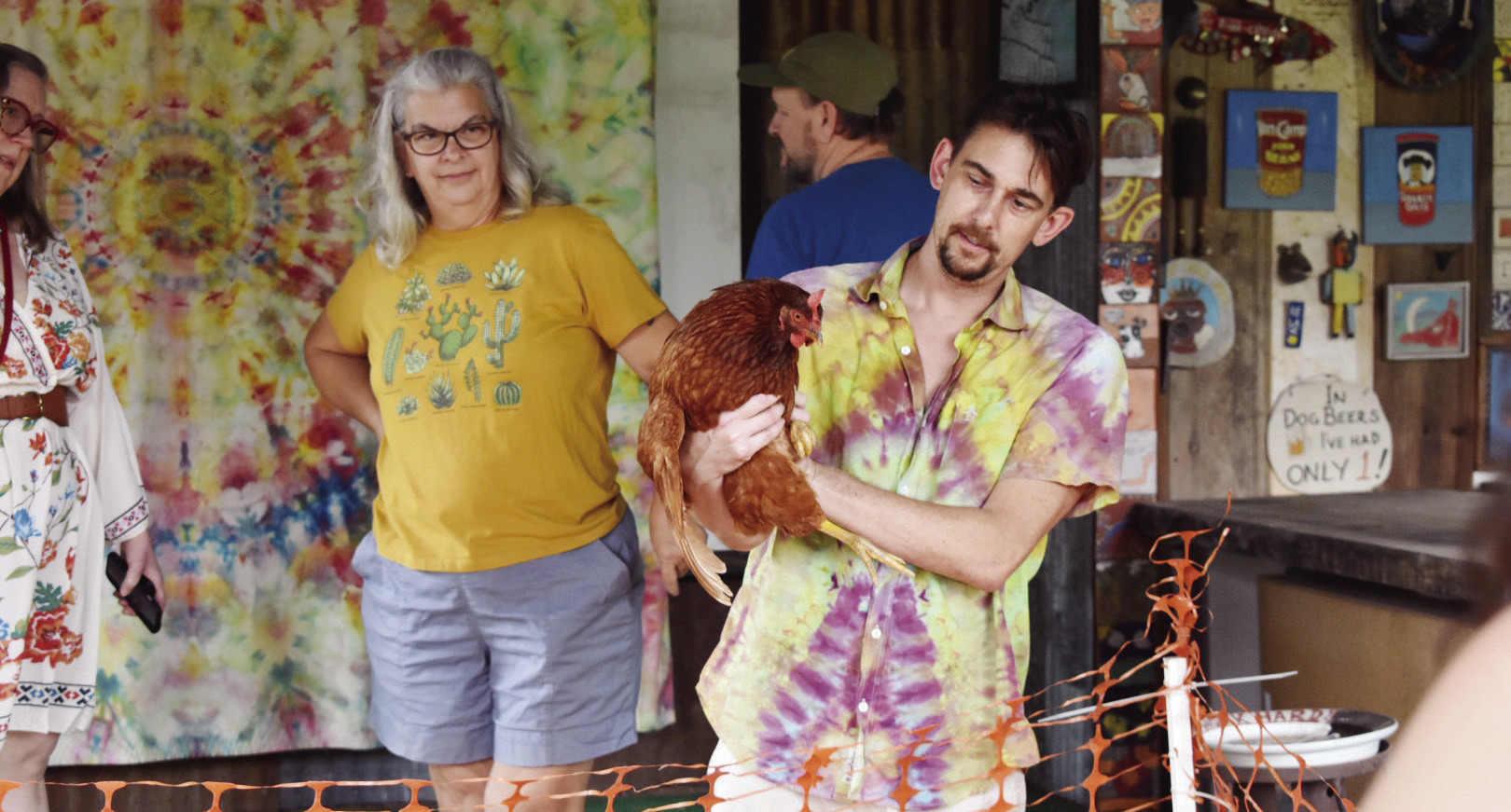 Above, Rob Sheldon holds Red as she prepares her plops for Chicken Poop B-IN- G-O. Daily Record photo by Rebekah Porter