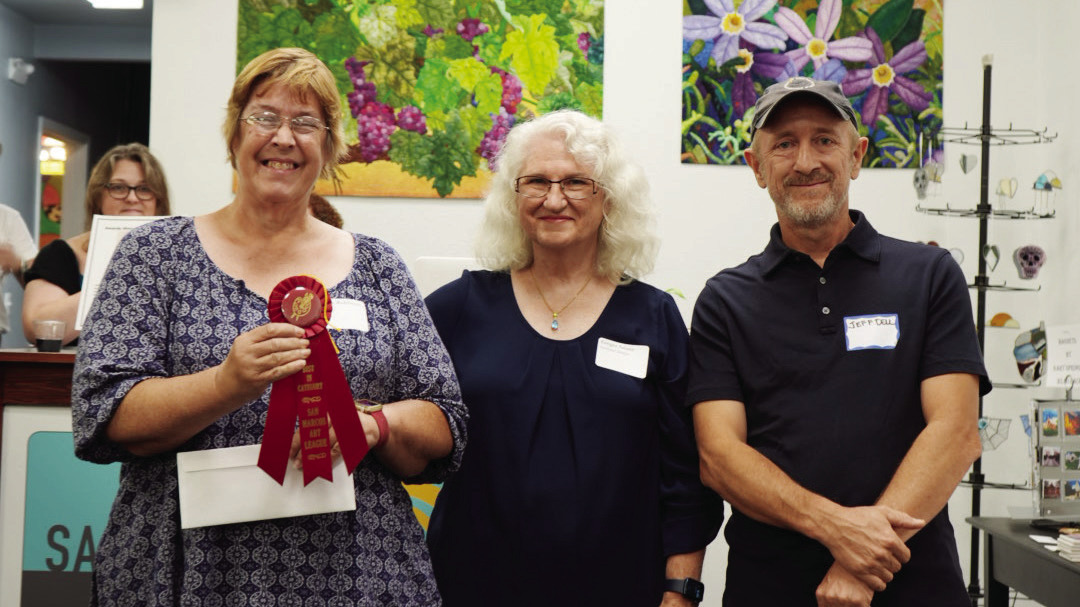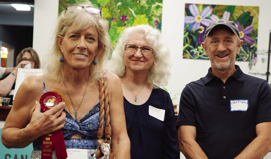 More than 100 people attended the July 11 opening reception of the Awards Show at the San Marcos Art Center. The work of 45 artists is in the exhibition, and every one of them displayed the best of their creativity. Jeffrey Dell, the Area Head of Printmaking in the School of Art and Design at Texas State, judged the show and nominated the winners, which were announced during the reception. There are five media categories, each receiving an Honorable Mention and a first place award. There was also an overall winner awarded as Best in Show.