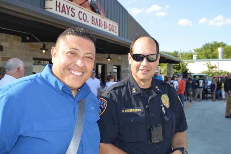 Gary Job Corps graduate Dago Pates, who’s a Kyle police officer, with San Marcos police officer Brandon Winkenwerder.