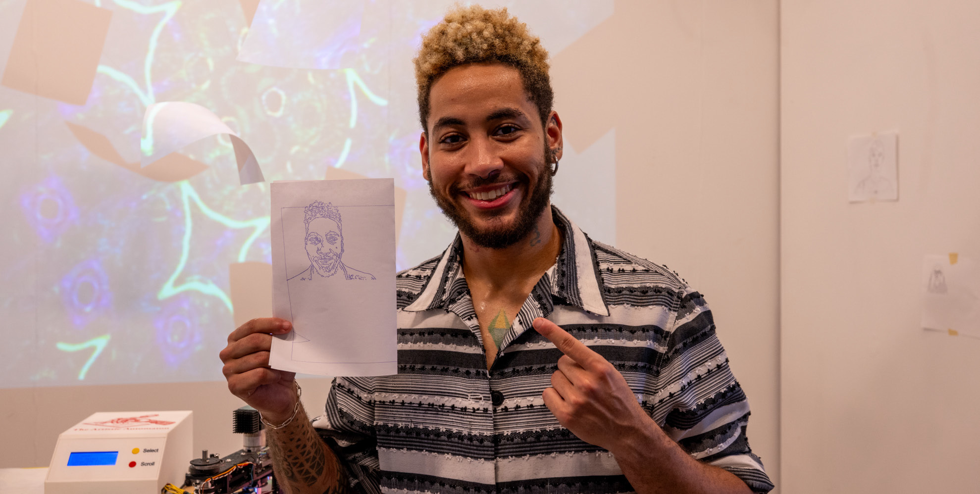 Technology and creativity go hand in hand, or in artist and engineer Iris Okoro’s case, they go hand in robotic arm. With the help of senior engineering students, Okoro and his team created the Artistic Automaton. The machine is an autonomous robotic drawing arm that translates user submitted images into stylized line art. Not to be mistaken for emerging AI image generation technology, the robot simply translates a submitted photo into a sketch and draws it in real time. Although the robot is anything but simple, this was the award-winning senior design project for Okoro and his team of Texas State University engineering students, which included Paul Henson, Jamal Close and Nick Whipple. The team worked together throughout the semester to code and construct the robot from scratch.