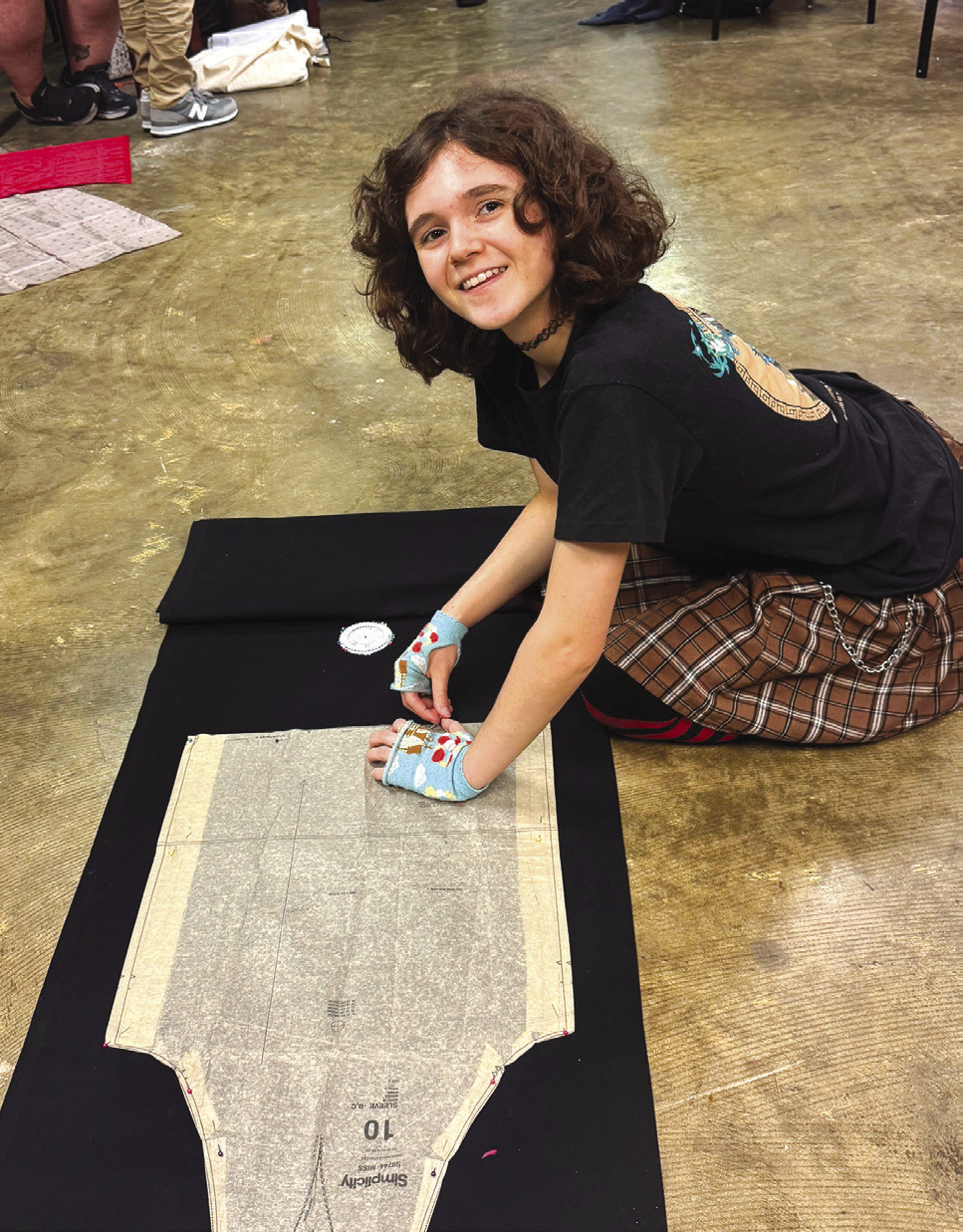 After assembling the parts, students begin to build their costume at the sewing machine.