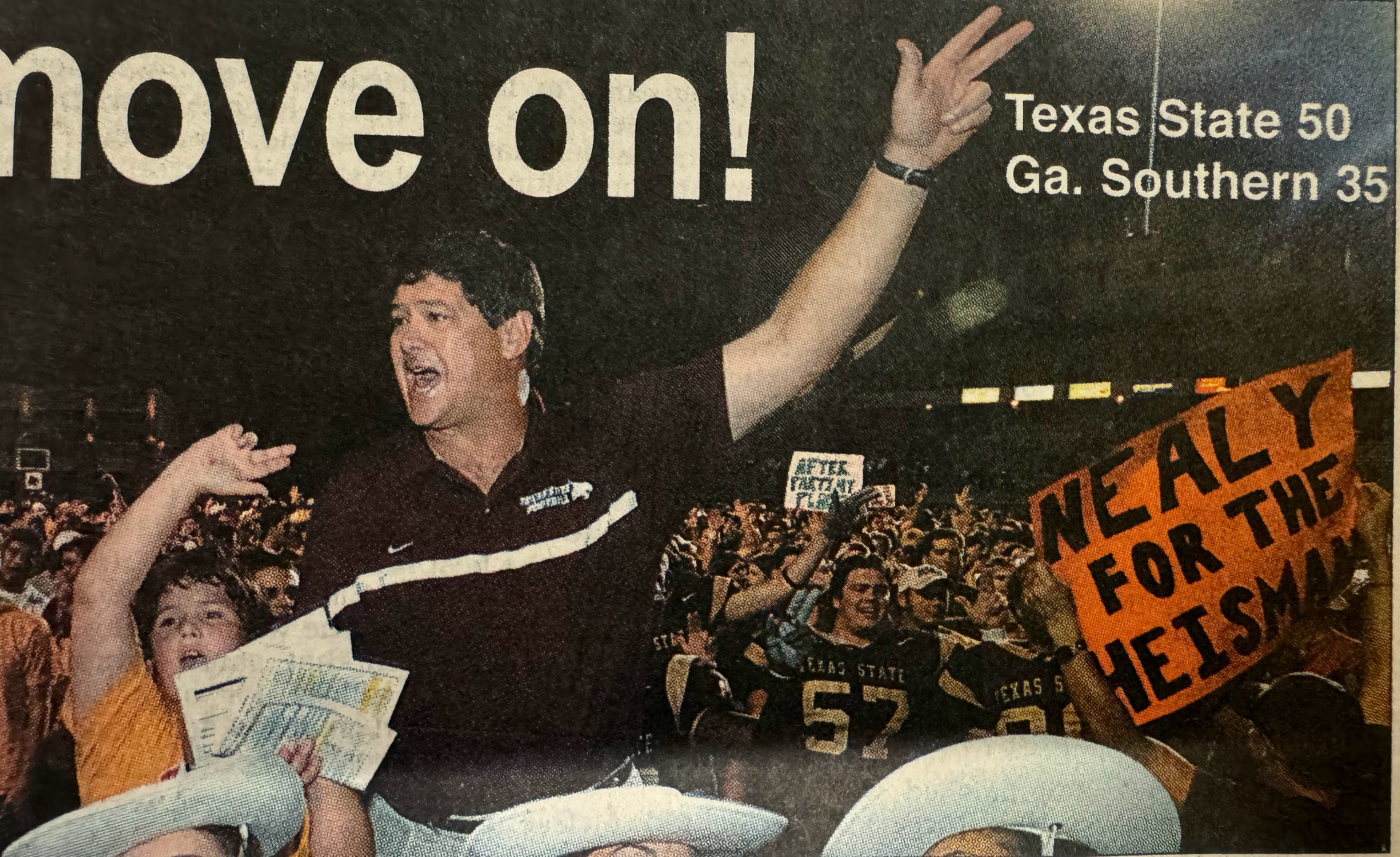 “I had been doing this for over 25 years, and I don’t remember a whole lot of plays,” Bill Culhane, former play-by-play announcer for Texas State, said. “But Nick Session getting the ball from Barrick [Nealy] five yards, heading towards Aquarena Springs in the north end zone, I can still see Nick running [ball in] for the win.”