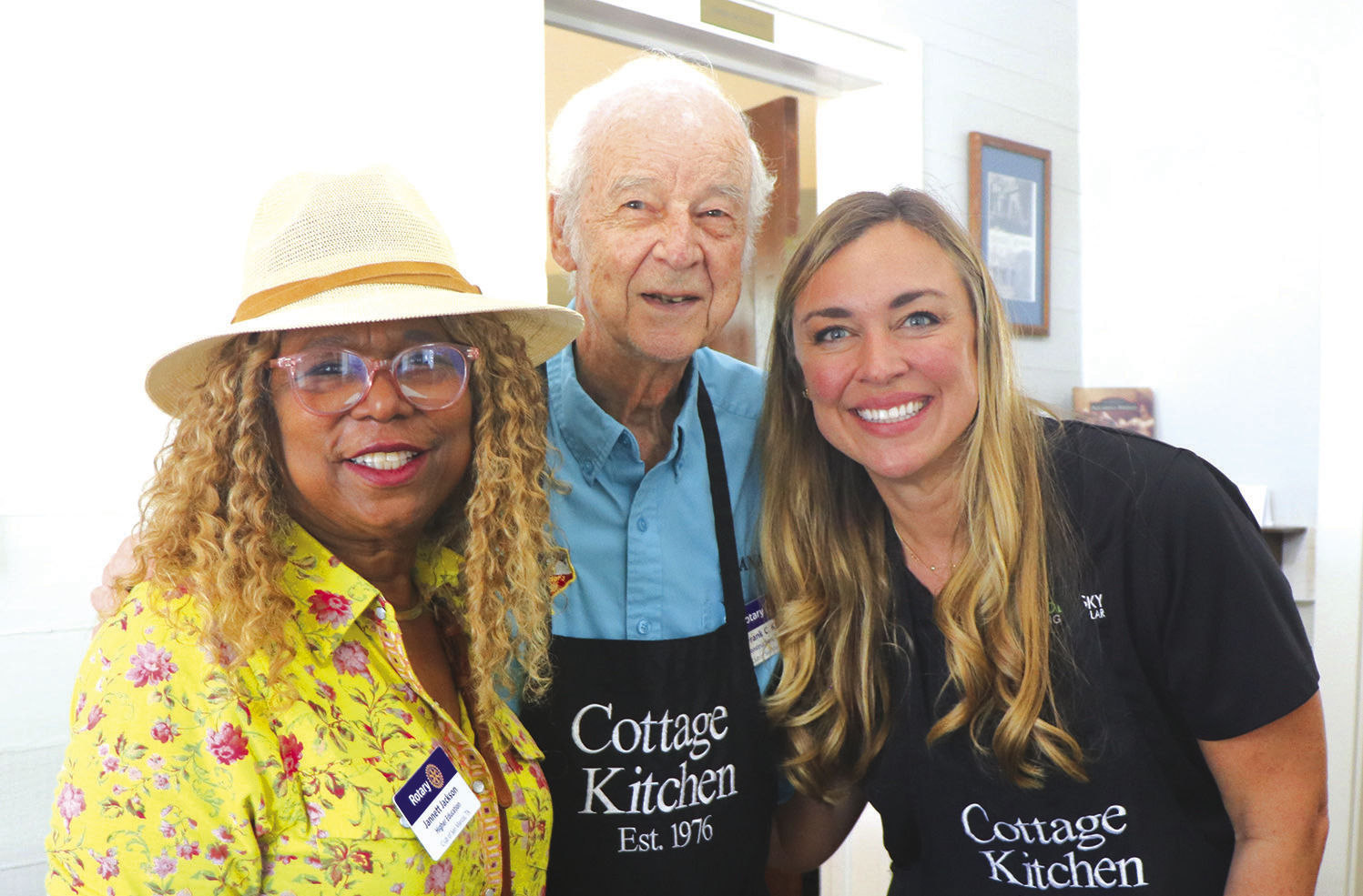 Rotary Club members Dr. Jannett Jackson and Frank C. King pause from assisting visitors to take a photo with HASM communications chair Allison Hardy. Daily record photo by Celeste Cook