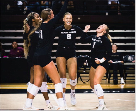 The Bobcats return many of their starters from last season including outside hitter Samantha Wunsch and former San Marcos Rattler Maggie Walsh. Photo submitted by Texas State Athletics