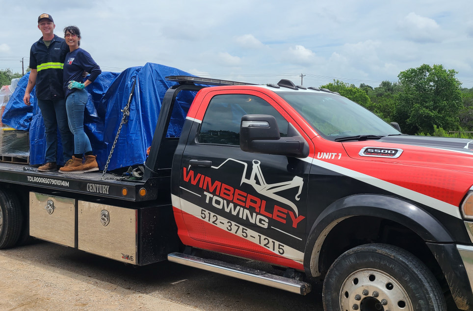 “We had a rainy day and the forklift got stuck in the mud, so we went online and said, ‘Please, can anybody help us? We cannot do any pallets until our forklift gets out,”’ Angie said. “So Wimberley Towing shows up and pulls our forklift out of the mud.”