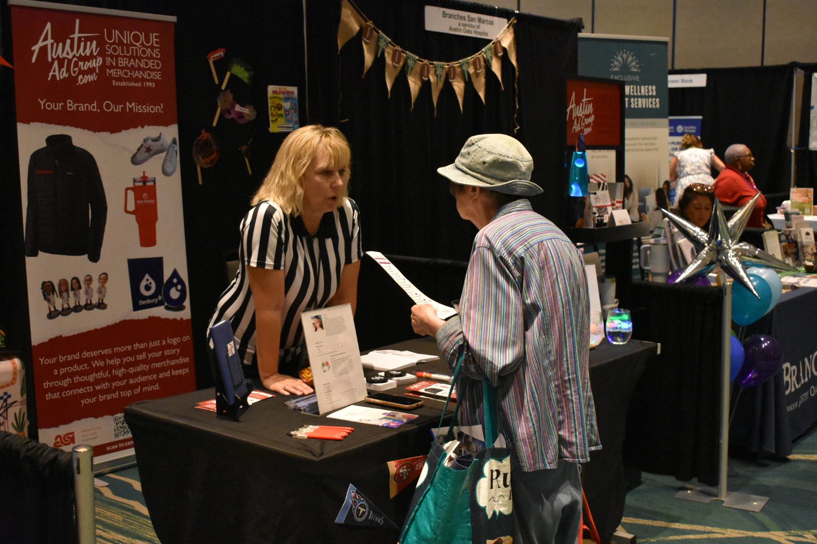 Guests explore the SM Air A/C & Heating booth. Daily Record photo by Rebekah PorterThe Wineaux booth was a popular spot at the showcases. Daily Record photo by Rebekah PorterThe Austin Ad Group representative chats with a guest. Daily Record photo by Rebekah PorterGuests chat with House Gomez Music & Media. Daily Record photo by Rebekah PorterChamber Operations & Membership Manager Marisol Gomez Mendoza poses with Membership Development Executive Tiffany Quibodeaux. Daily Record photo by Rebekah PorterA guest explores the Bug Master booth. Daily Record photo by Rebekah PorterMcCoy’s Building Supply representatives pose at their booth. Daily Record photo by Rebekah PorterThe San Marcos Police Department had a booth showing off their rescue vehicle. Daily Record photo by Rebekah PorterGuest explore the Home Instead booth. Daily Record photo by Rebekah PorterChamber Board Director Joshua Paselk announces raffle winners. Daily Record photo by Rebekah PorterThe Mistick Krewe of Okeanos had a Mardi Gras themed booth. Daily Record photo by Rebekah PorterThe Medpark Hearing Center booth. Daily Record photo by Rebekah PorterThe Better Business Bureau booth. Daily Record photo by Rebekah PorterThe Modern Staffing booth. Daily Record photo by Rebekah PorterThe House Gomez Music & Media Booth. Daily Record photo by Rebekah PorterThe San Marcos Academy Booth. Daily Record photo by Rebekah PorterThe Coastal Office Solutions booth. Daily Record photo by Rebekah PorterThe PALS Prevent a Litter of Central Texas booth. Daily Record photo by Rebekah PorterThe School Fuel booth. Daily Record photo by Rebekah PorterThe Central Texas Wing of the Commemorative Air Force booth. Daily Record photo by Rebekah PorterThe San Marcos Lions Club booth. Daily Record photo by Rebekah PorterThe Bug Master booth. Daily Record photo by Rebekah PorterThe Ozona Bank Booth. Daily Record photo by Rebekah PorterThe Hope Hospice booth. Daily Record photo by Rebekah PorterThe Atlantic Palazzo Booth. Daily Record photo by Rebekah PorterThe San Marcos Conference Center hosted the San Marcos Chamber Business Showcase. Daily Record photo by Rebekah Porter