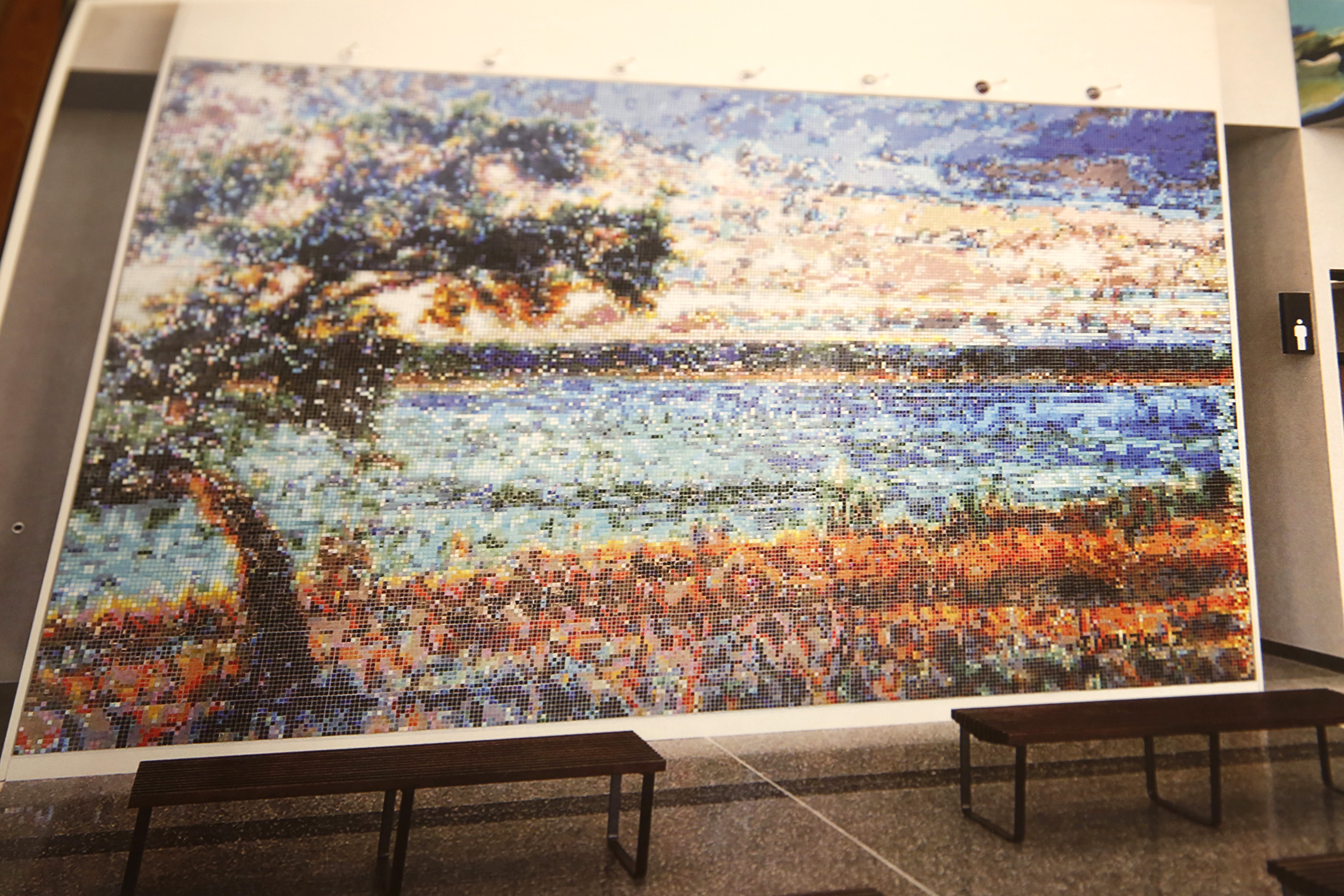 “The iridescent shimmer of the tiles is the perfect material medium to represent the river itself and the reflection of the sun bouncing off the water,” Muzacz said. “We have some depths of color that you can’t get with paint.”