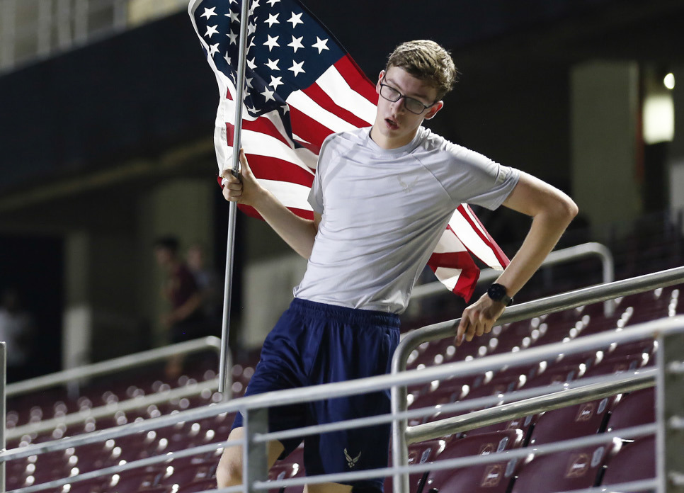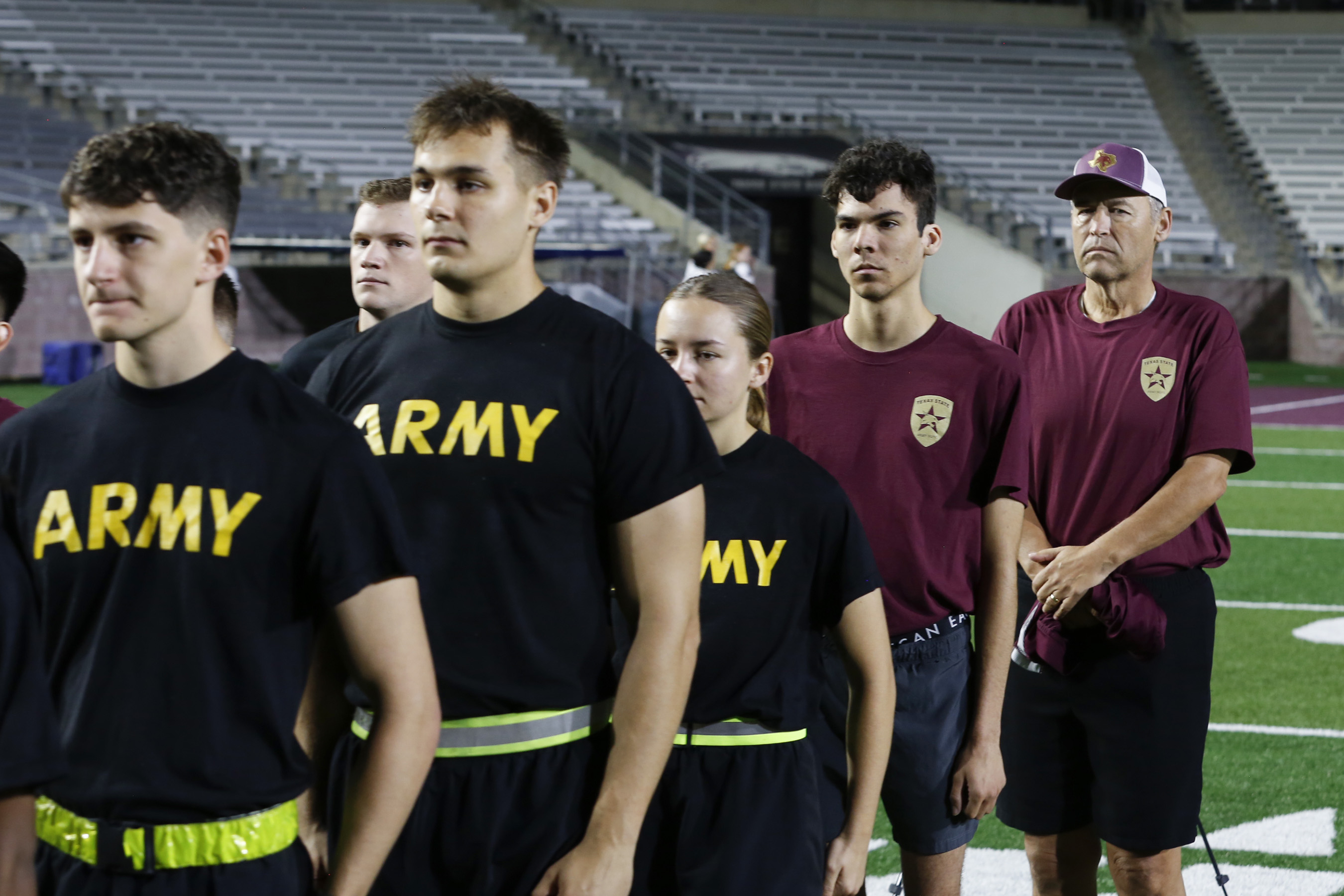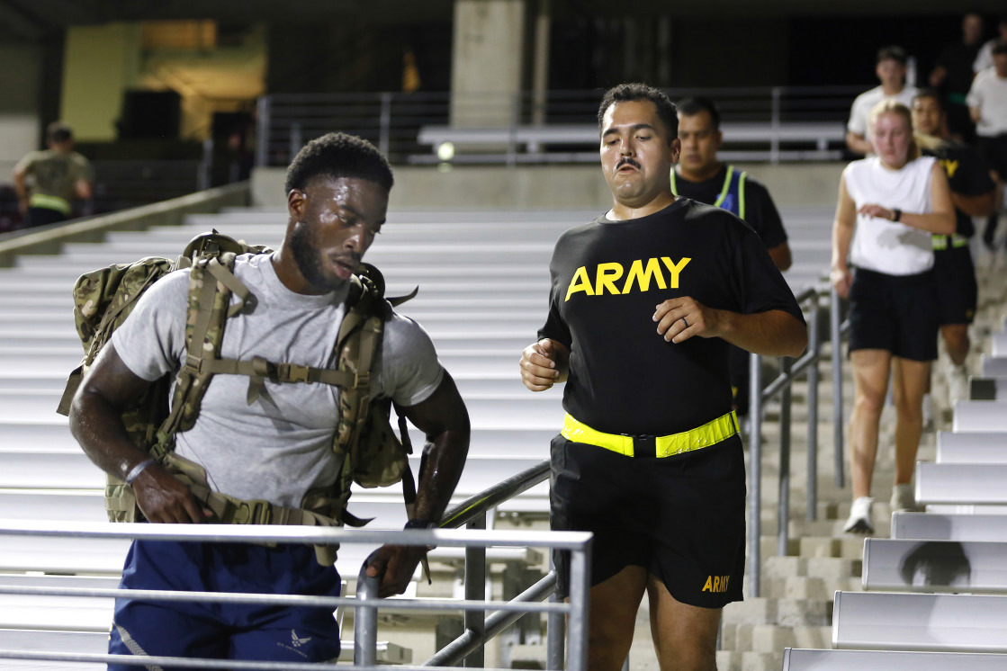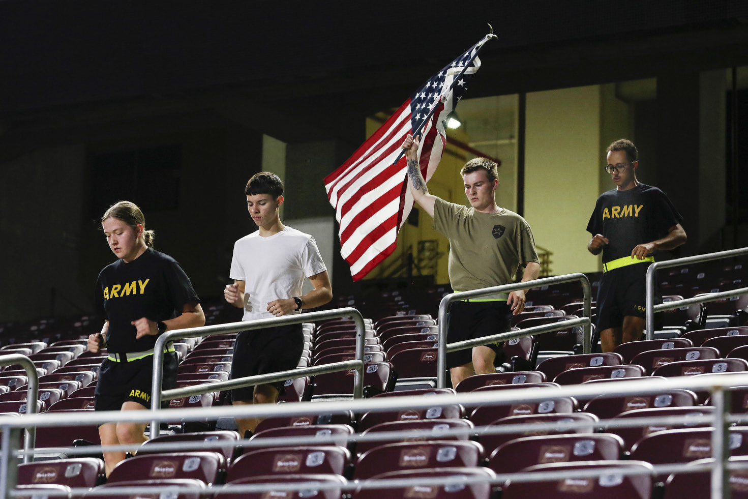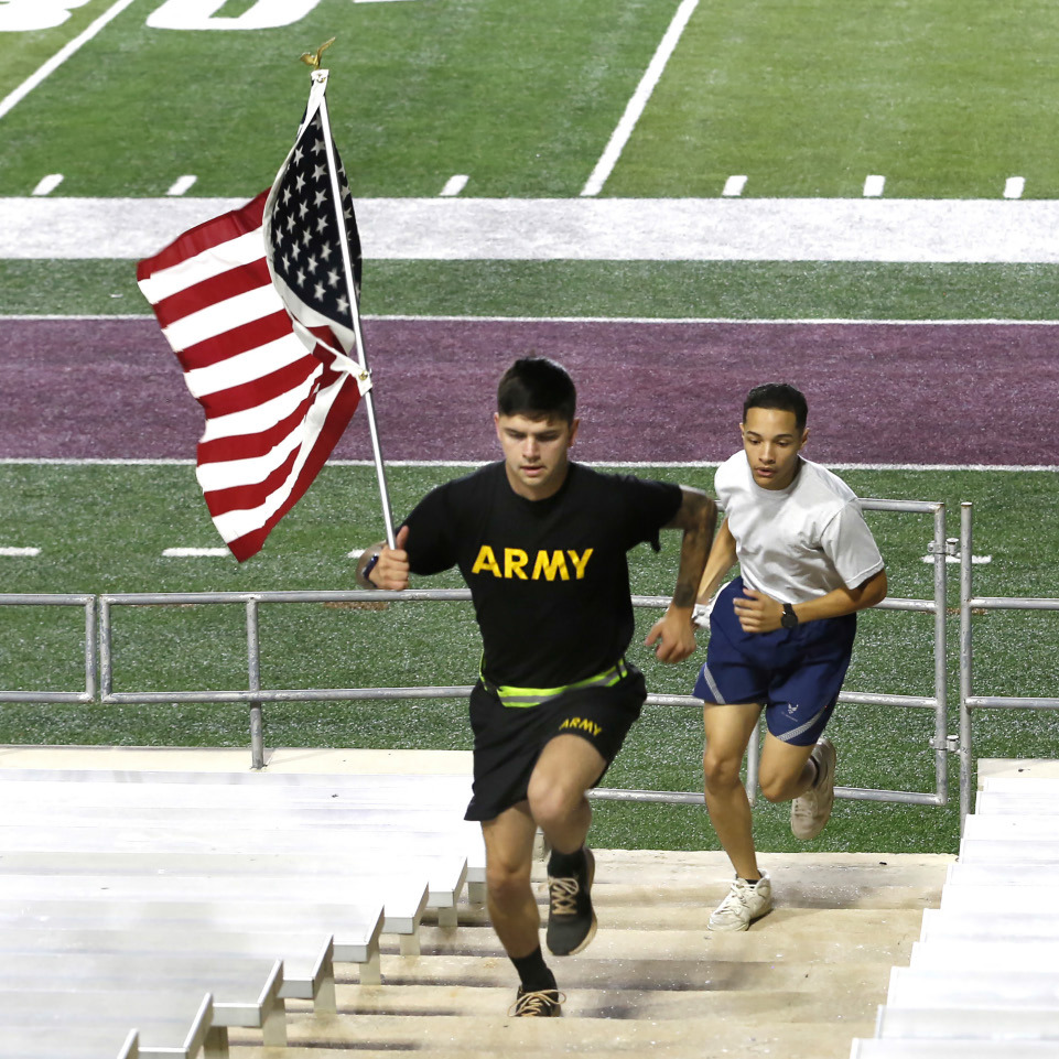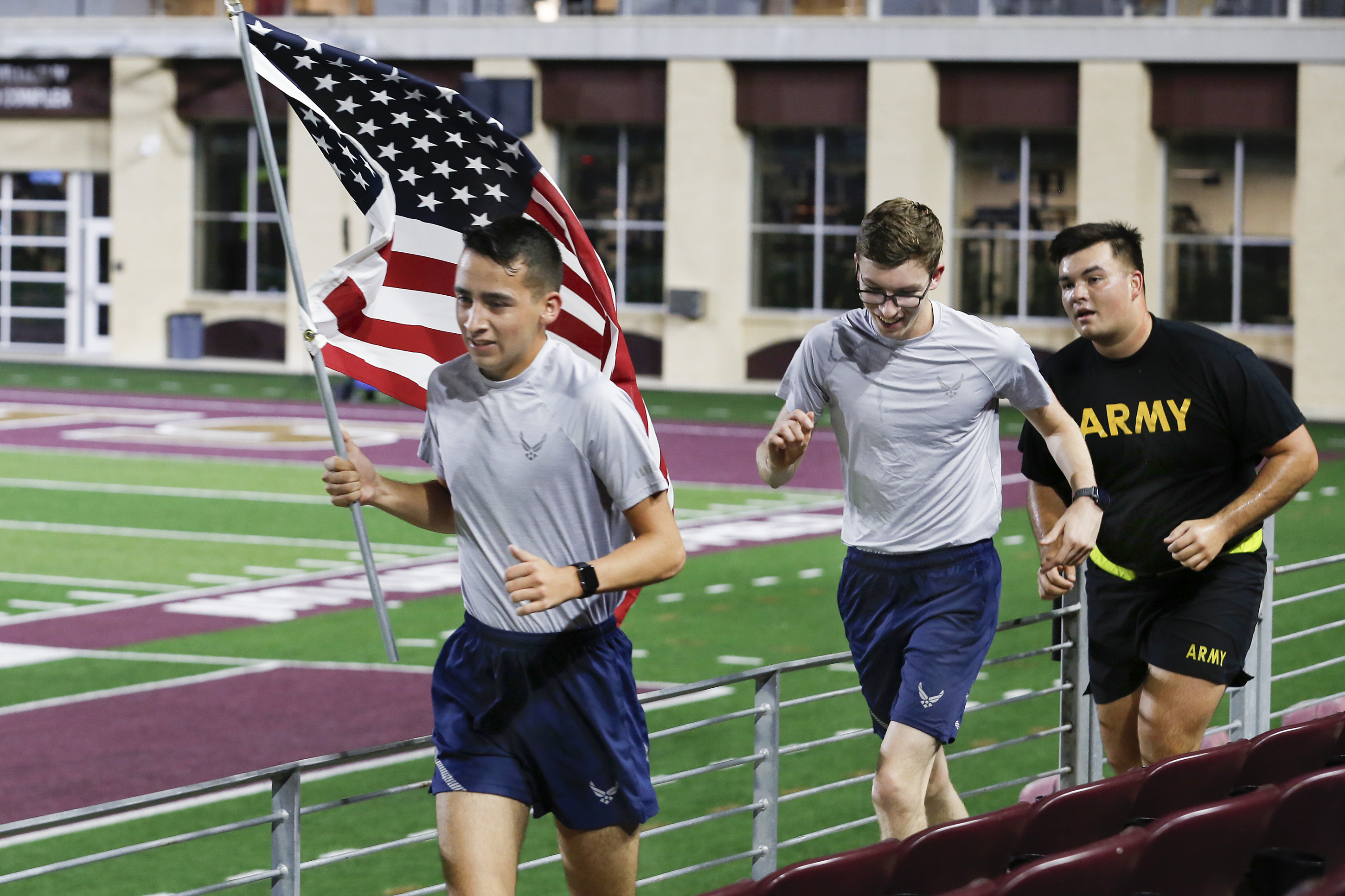 Texas State Army and Air Force ROTC members gathered before dawn at UFCU Stadium on Thursday morning to climb stadium stairs to honor the lives lost on 9/11 as well as the heroic efforts of first responders.