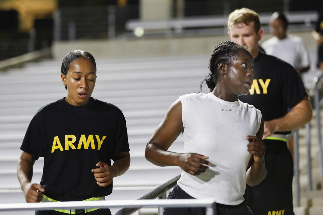 Cadets climbed a total of 2,090 steps during the event, representing the 110 floors of the World Trade Center. ROTC members separated into four groups and crisscrossed four separate sections of the lower level of stadium seating for approximately 20-30 minutes.