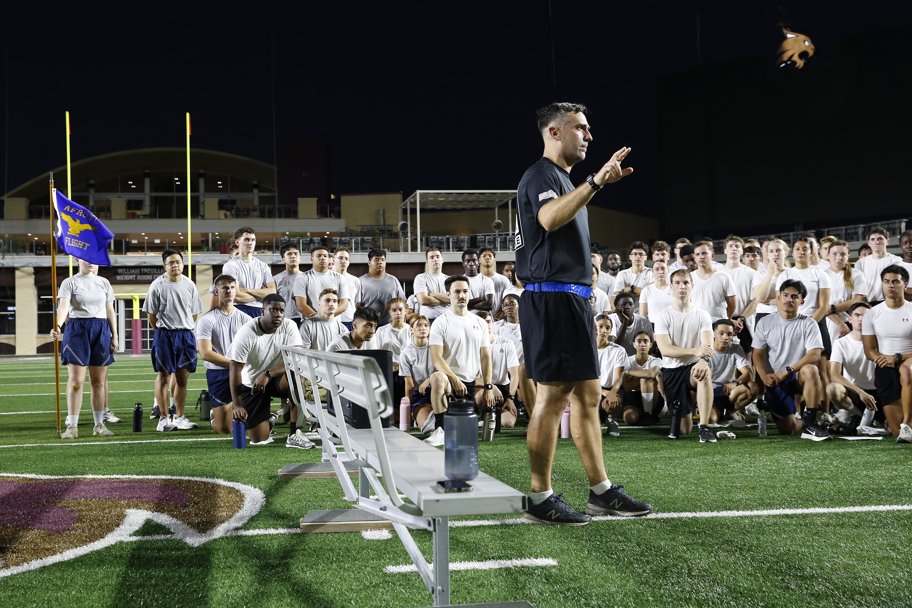 Lieutenant Colonel Brice Roberts, Texas State professor of Military Science and Army ROTC instructor, spoke about the importance of mental and physical fitness in military training.
