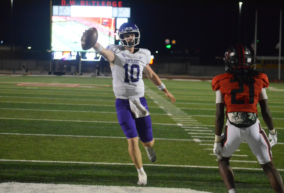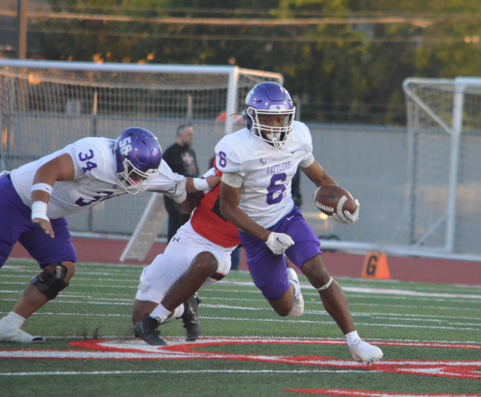 Buck Steyn threw three touchdowns and ran for three more to lead the San Marcos Rattlers to a 52-13 non-district win Friday against the Converse Wagner Thunderbirds at D.W. Rutledge Stadium.