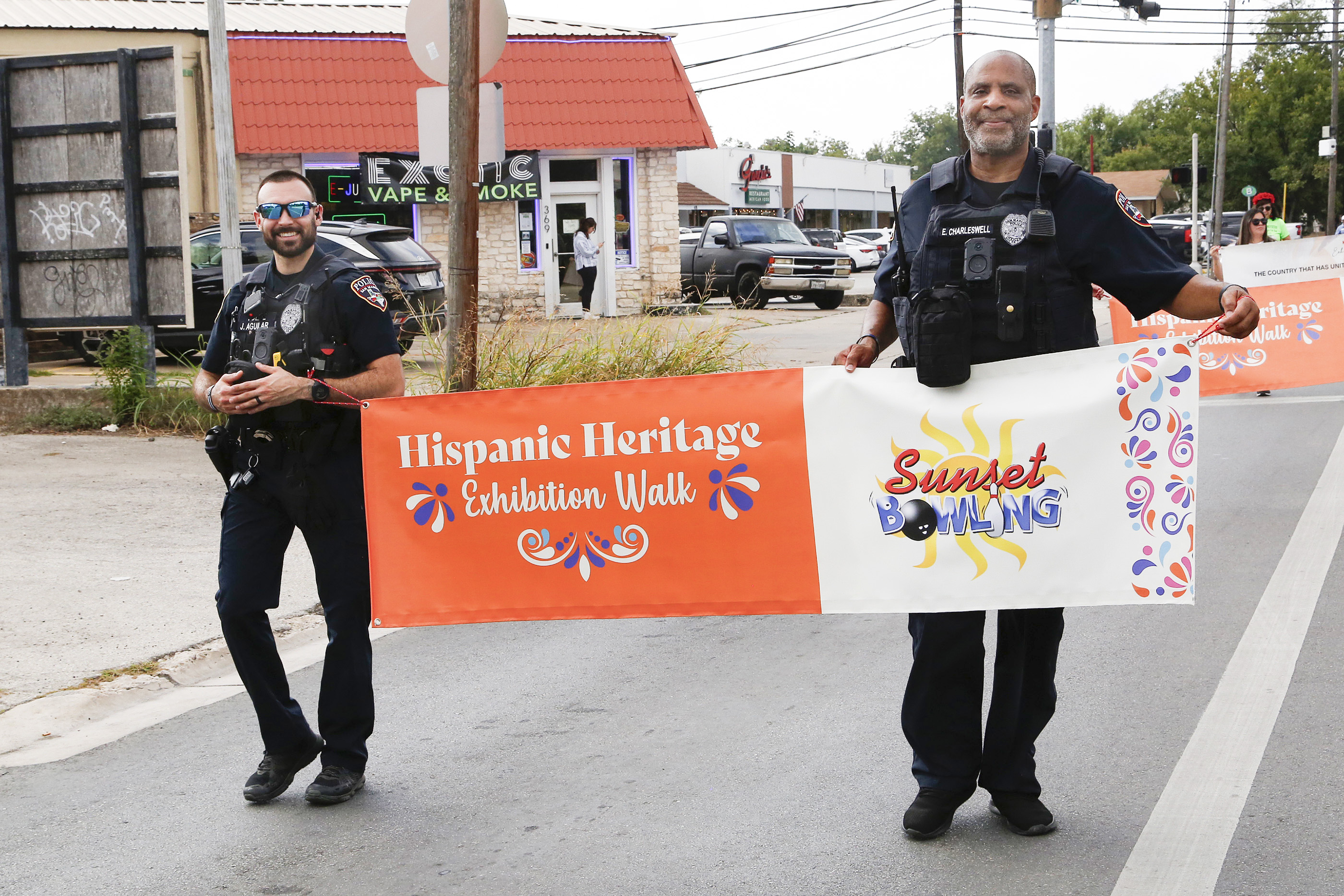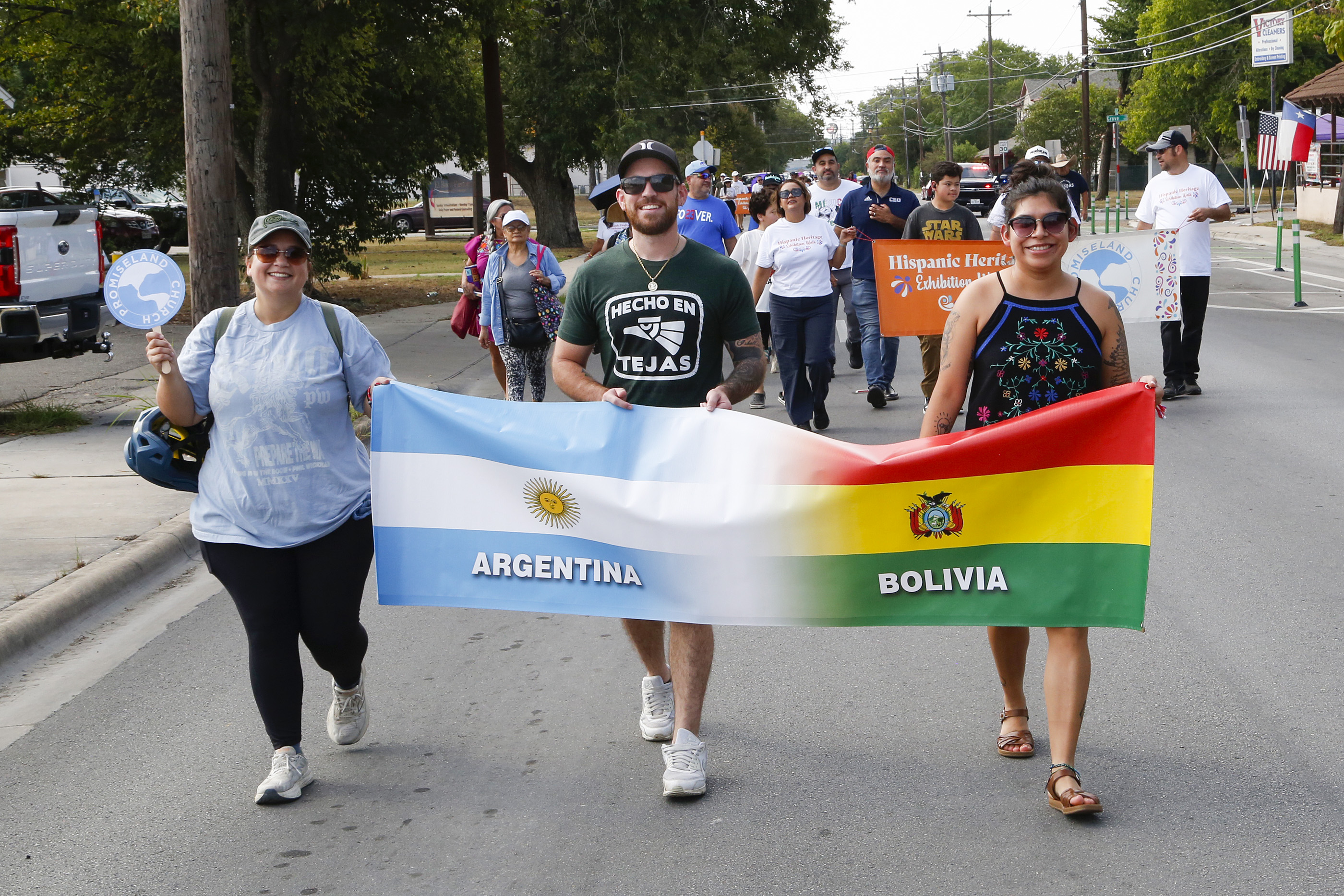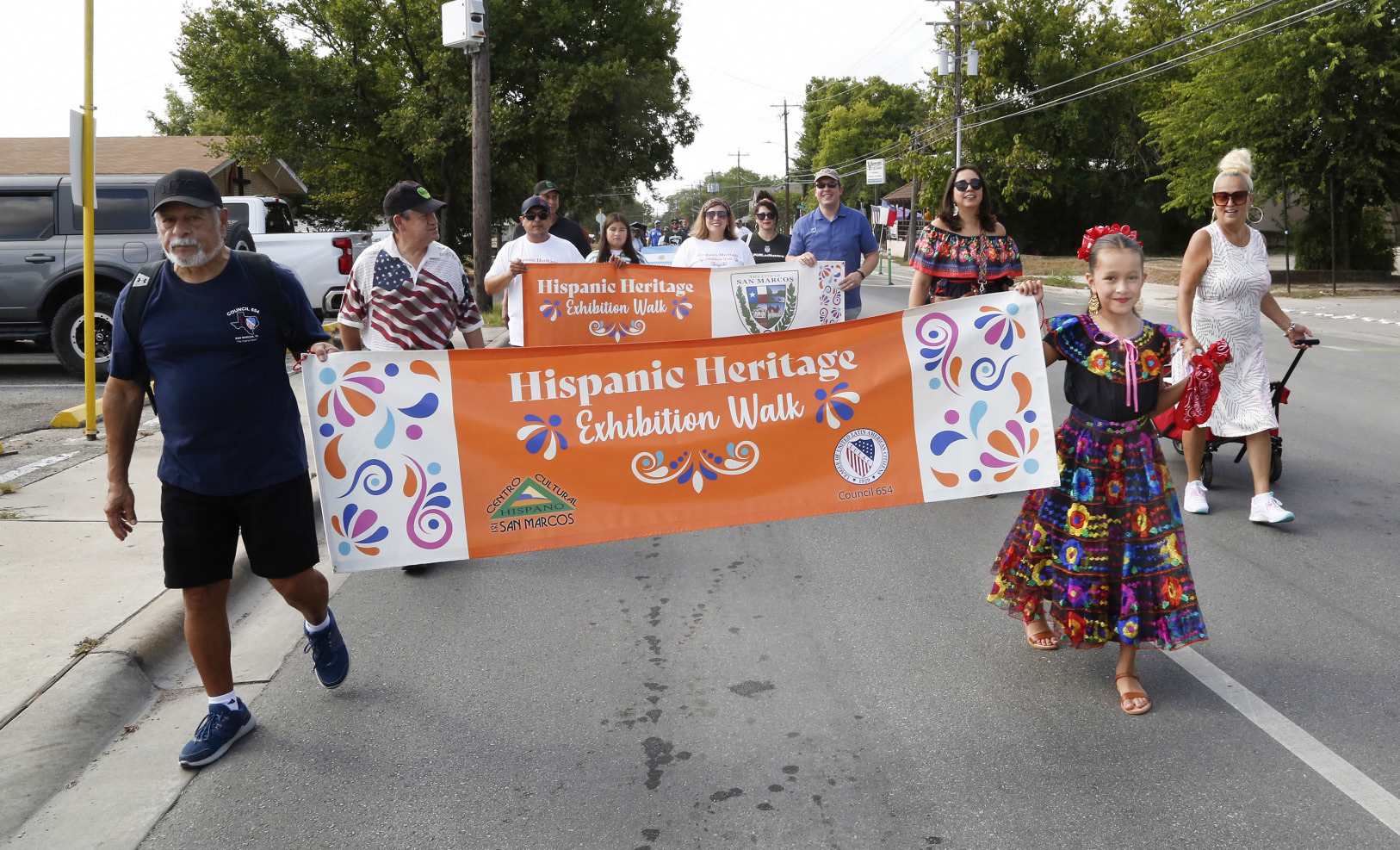 San Marcos celebrated our Hispanic and Latino communities with the Heritage Exhibition Walk on Saturday morning, with local residents, businesses and organizations carrying banners of countries of Central and South America as well as of parade organizers and sponsors. Proceeds from the event provide scholarships for San Marcos High School students.