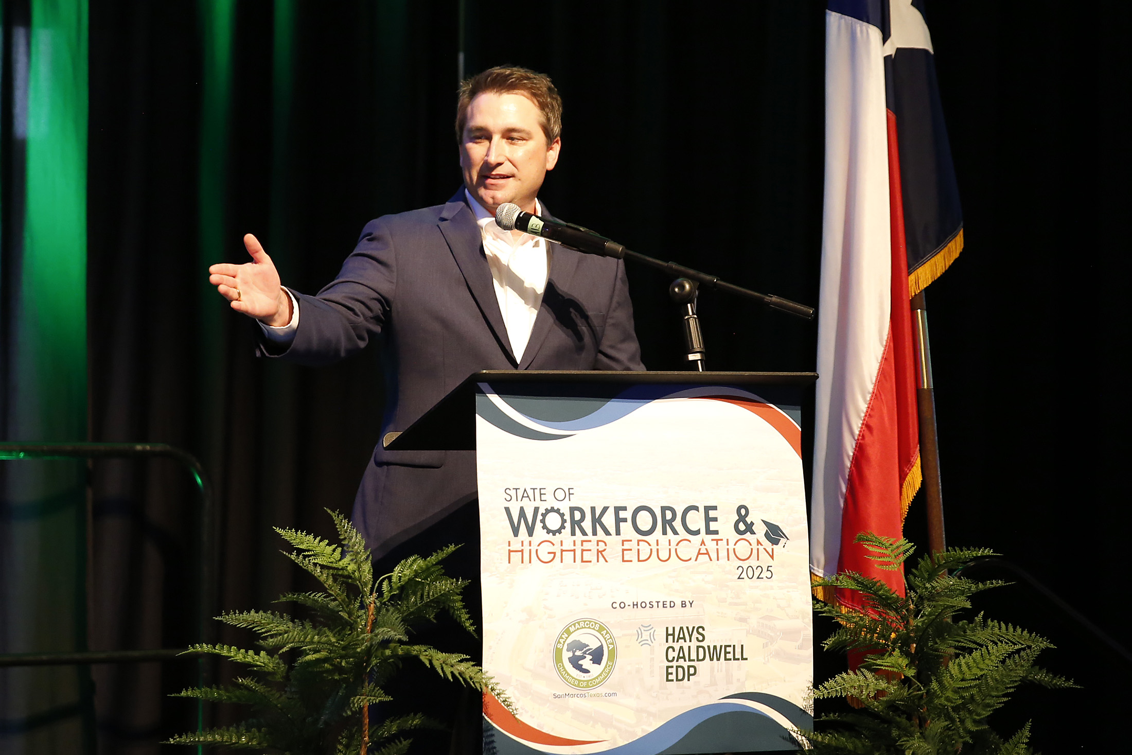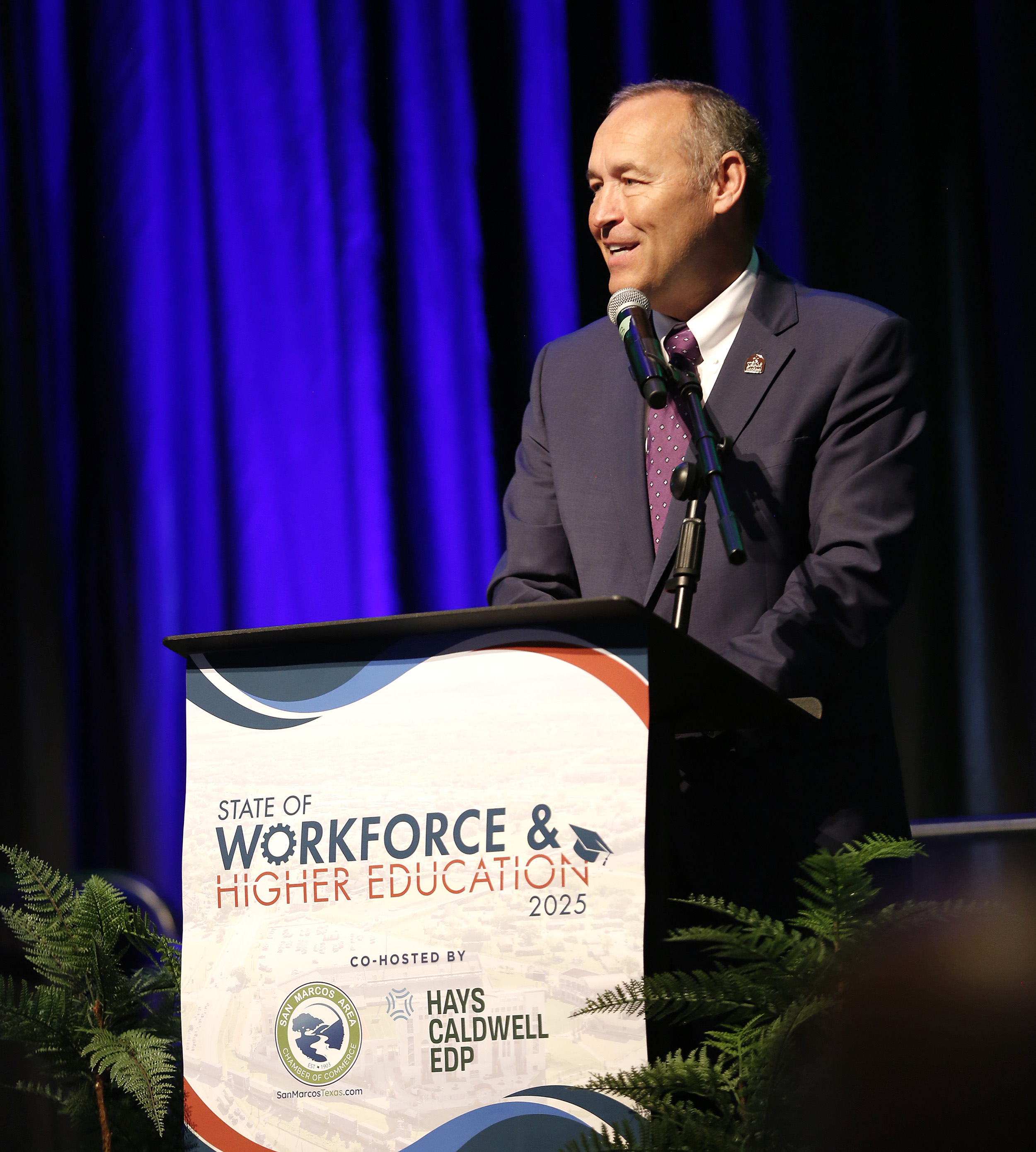 Guest speaker Mike Anderson, Provost, Texas State Technical College at New Braunfels Campus also focused on workforce training in the San Marcos area. For more on TSTC, see Friday’s issue of the Daily Record.