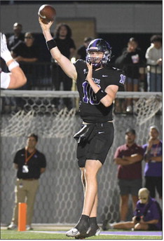 Quarterback Buck Steyn attempts to make the pass over the jumping Lake Travis defender. Daily Record photo by Gerald Castillo