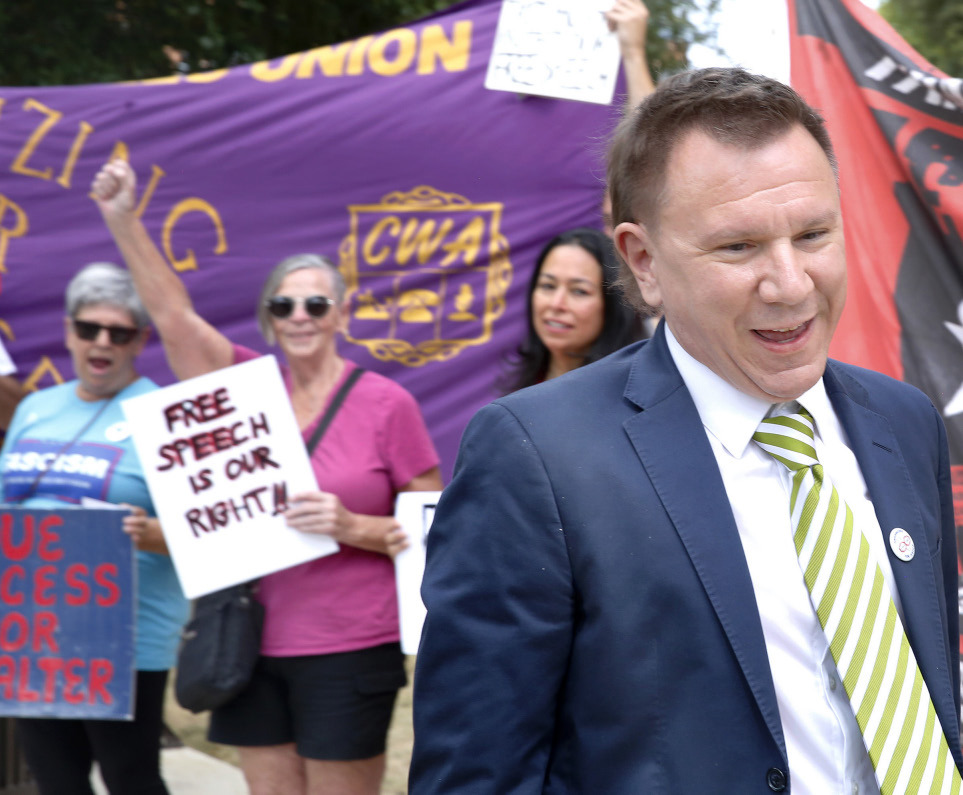 “Basic free speech is ongoing. Free speech doesn’t mean agreement, but it means the right to disagree and to voice an opinion, and once free speech is gone, then there’s freedom of press, freedom of assembly, then there’s due process, freedom of religion. I mean, this is what is at stake, you saw from the broad support from both faith leaders, politicians, unions and other community organizations.”