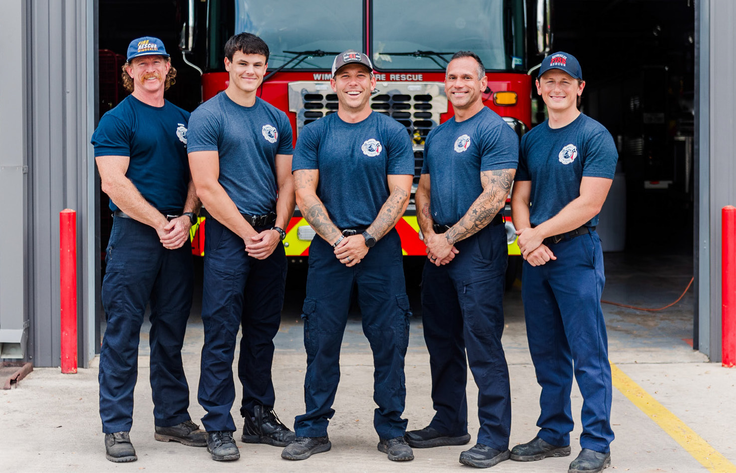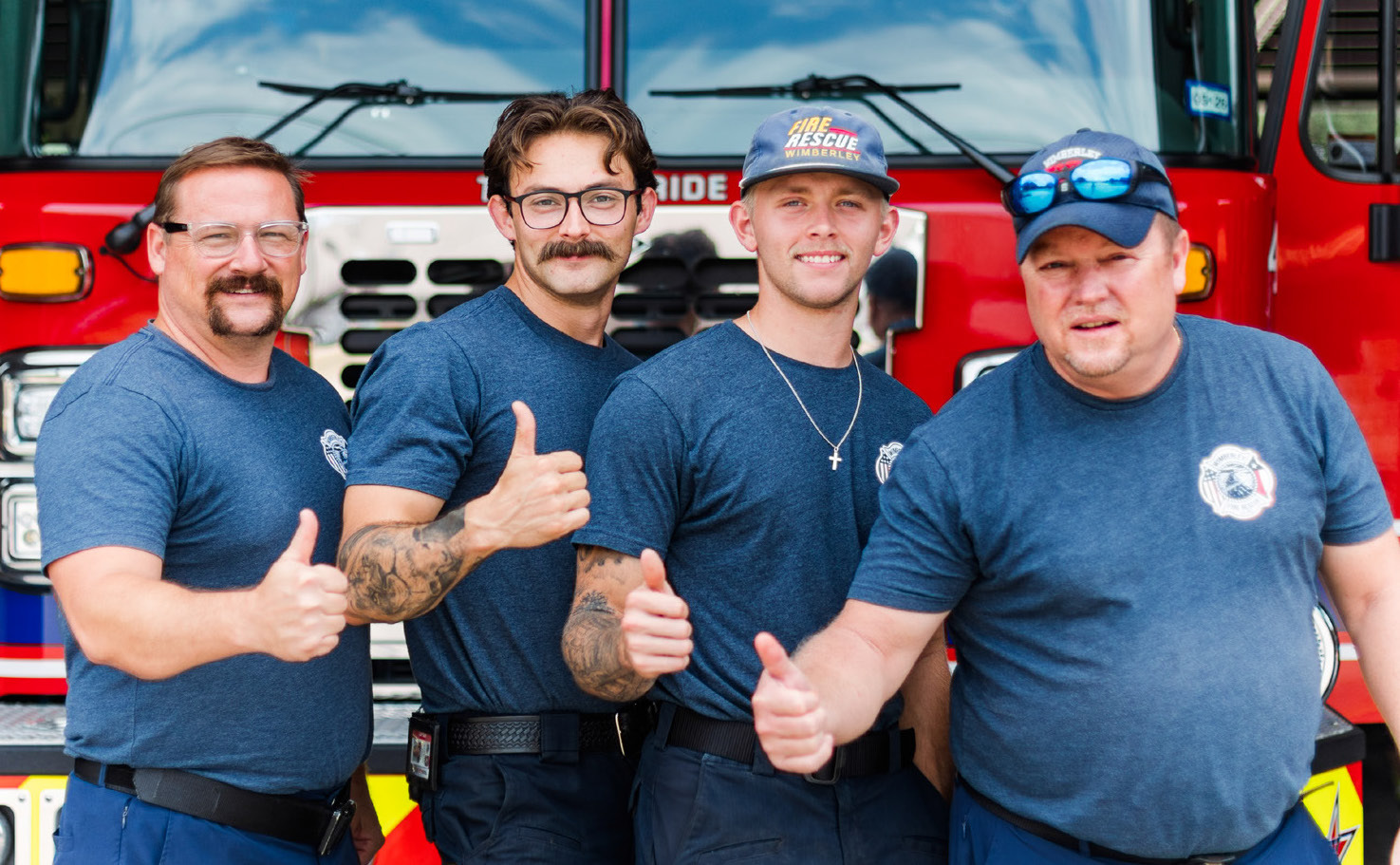 The B Shift gives a thumbs up. Pictured left to right are Bobby Trojcak, Captain Kidd, Canyun Staton and Brad Witten.Representing the C Shift, left to right, are Marshall Cool, a part time firefighter, Luke Elliott, Mitchell Strunk, Captain Ochoa and Ty Trojcak.
