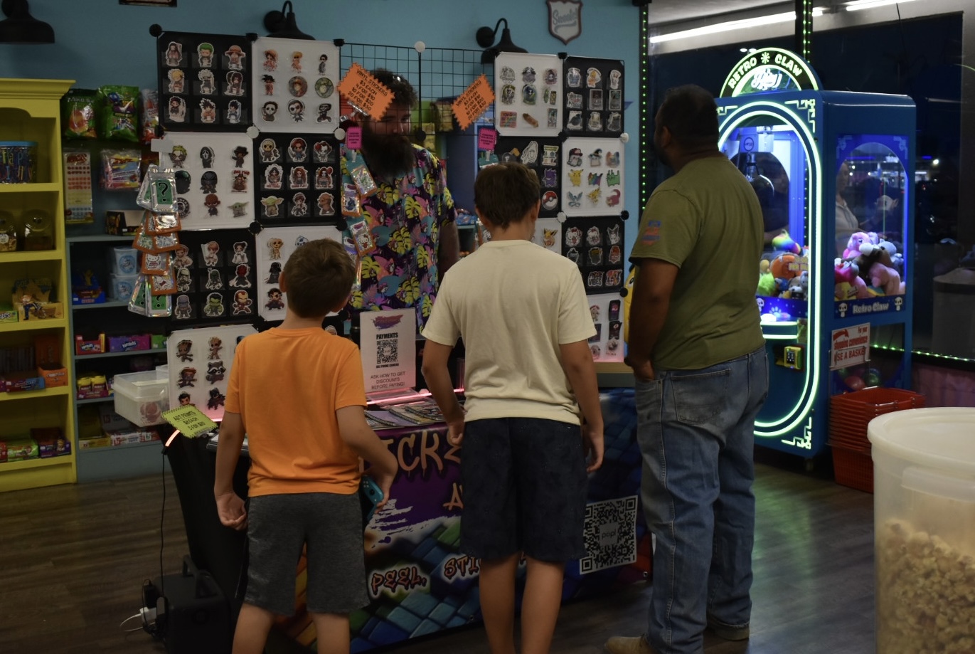 Over the Moon would often pop up at vendor events, not only expanding their popcorn’s reach to a new audience, but connecting to other vendors and artisans, leading to a partnership. This practice was on display during the event with the addition of Sticker Shock, a Buda-based sticker vendor. The popcorn poppers met the sticker slinger at a vending event in Buda and have been carrying their stickers in their store for months. The store also offers other local vendor selections from freeze-dried treats to 3D printed dragons and homemade cookies.