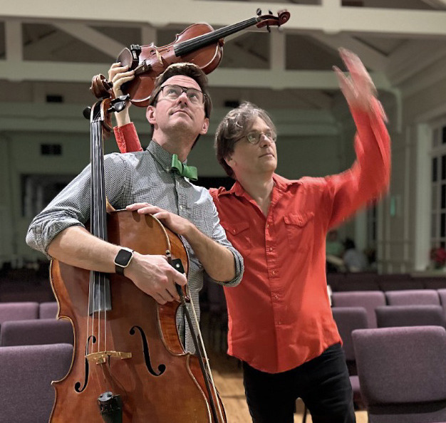 Violinist Will Taylor and Cellist Tony Rogers have fun before a set. Photo courtesy of Strings Attached