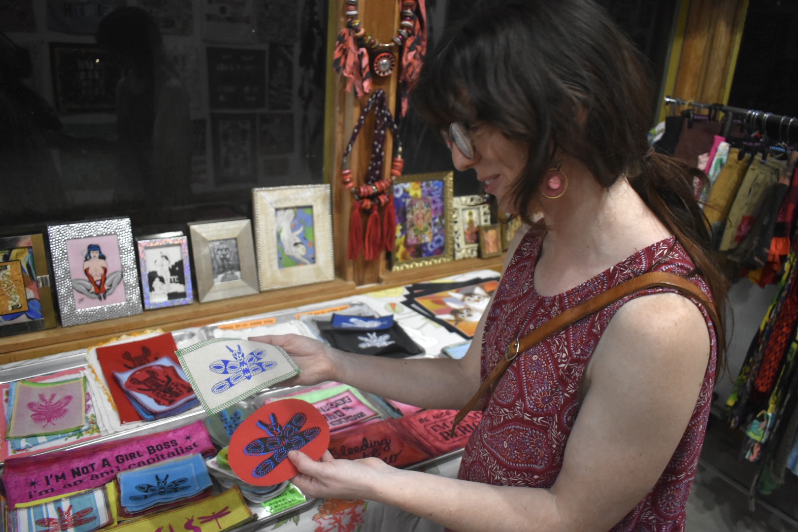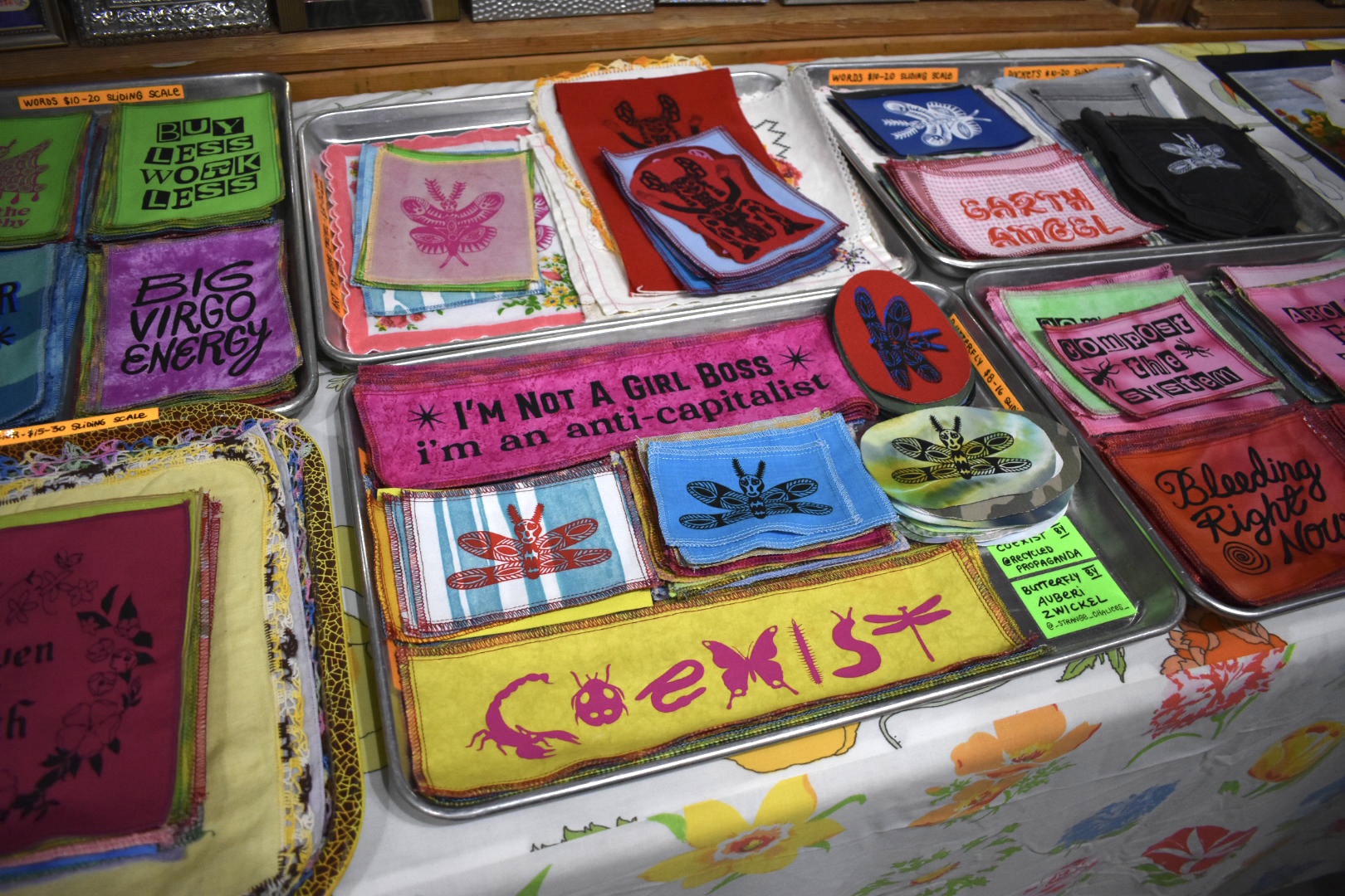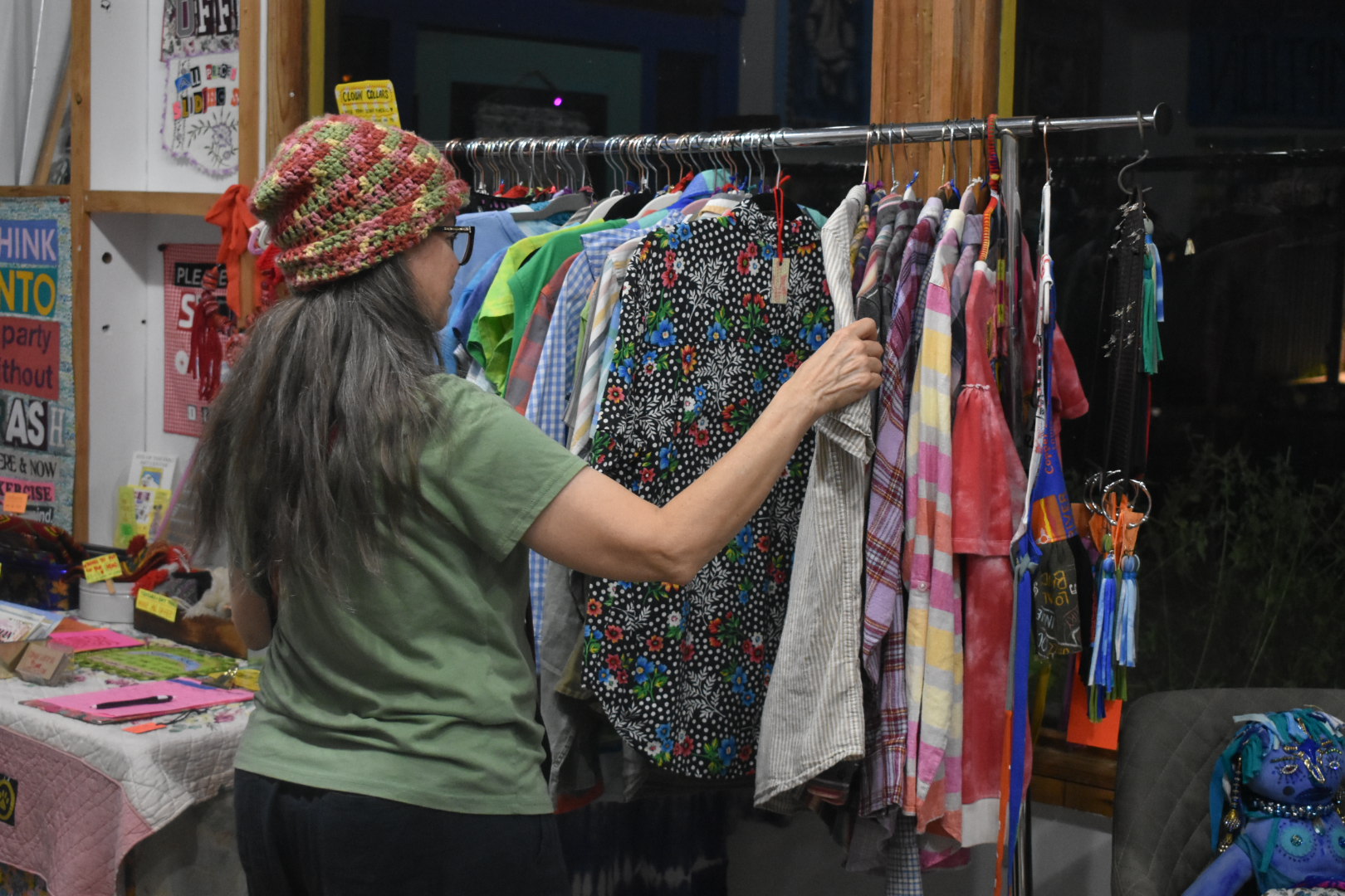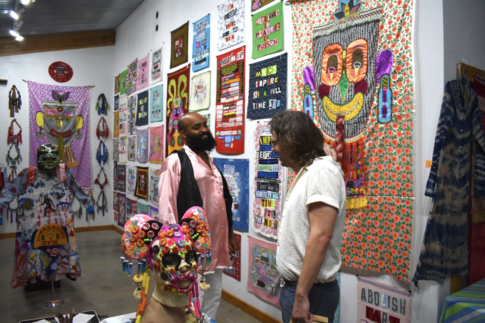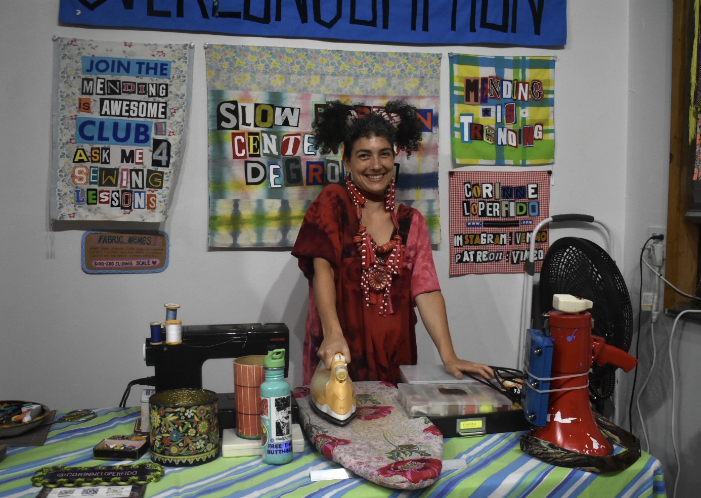 She filled the gallery from floor to ceiling with upcycled tapestries, patches and clothes, most originating from clothing and fabric en route to landfills. She transforms fabric into one-of-a-kind wearable artworks that rebel against the overproduction and overconsumption that is normalized in our day-to-day lives. The show is on view until Oct. 25 with gallery hours from 11:00 a.m. to 4:00 p.m. at 405 Valley View West Road.