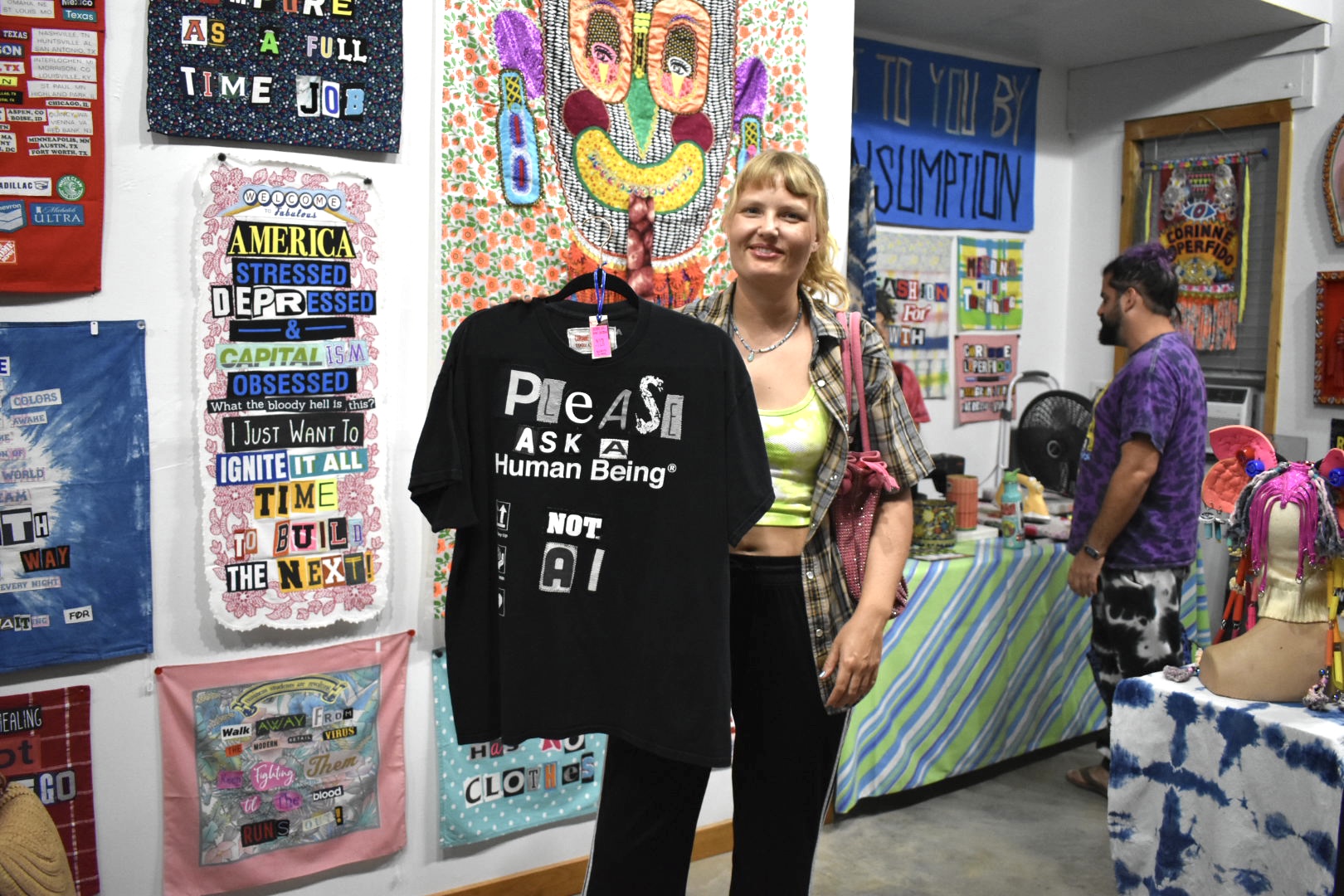 Fast fashion has been normalized through the increase in online shopping and is constantly encouraged by influencer-promoted brand ads, but in a remote art sanctuary in the hills of San Marcos, one artist is pushing back against the business of mass produced, low quality clothes. Corinne Loperfido is an artist and sustainable fashion designer who has called Central Texas her home for the past few years. Her art career has taken her around the world and landed her in the creative communities of San Marcos. She partnered with Eye of the Dog Art Center to bring a soft show to a mostly ceramic-dominated space.