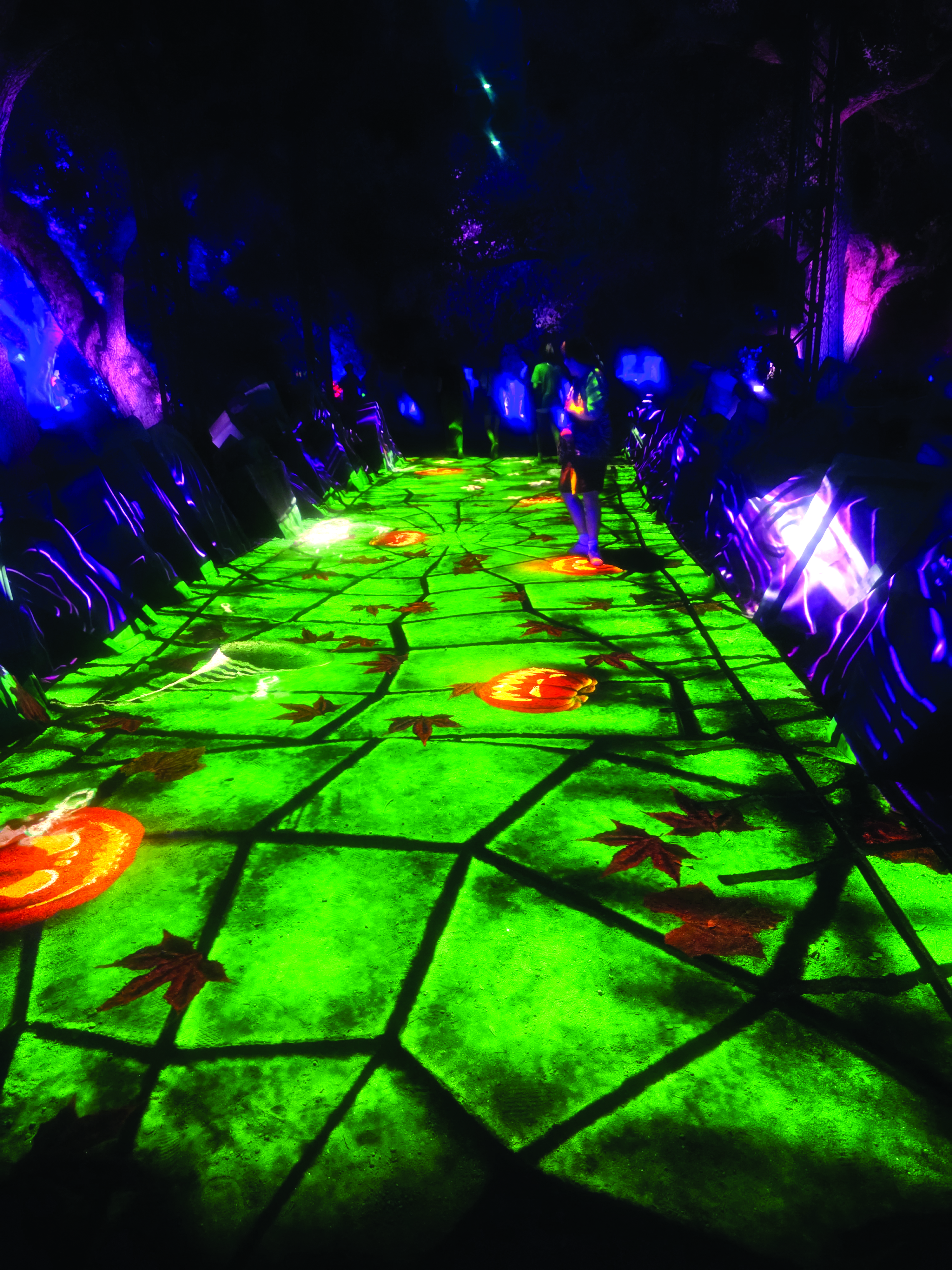 First, with all of its vivid, multi-colored light and animation effects, the trails are best experienced at twilight and into the full-dark of night. The trails are well marked and guides are present, but participants should not stray from the designated paths because uneven surfaces out of bounds could be challenging.