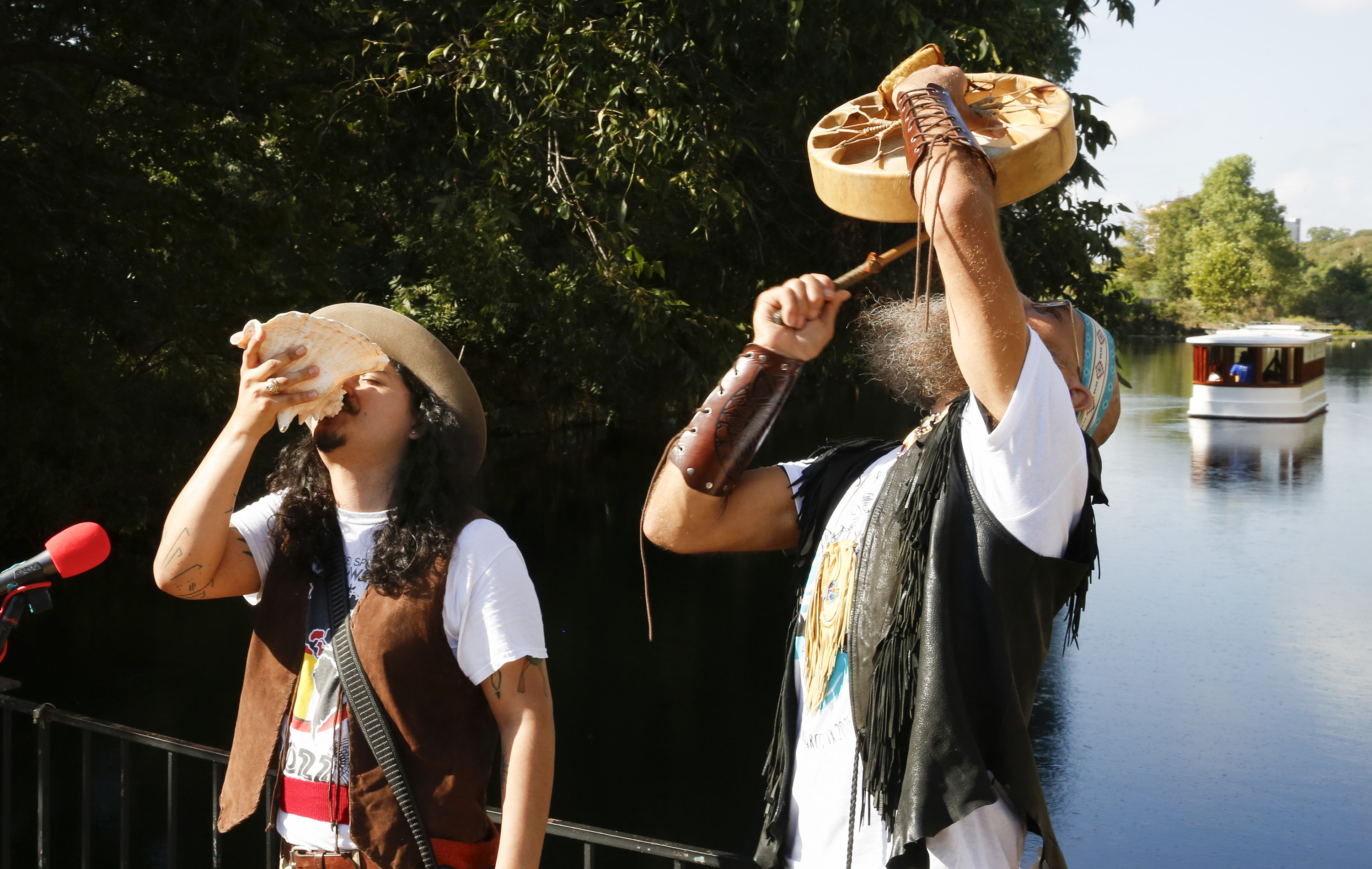 Jean took part in the blessing ceremony at the beginning of the Powwow, on the banks of the San Marcos River in front of the Meadows Center.