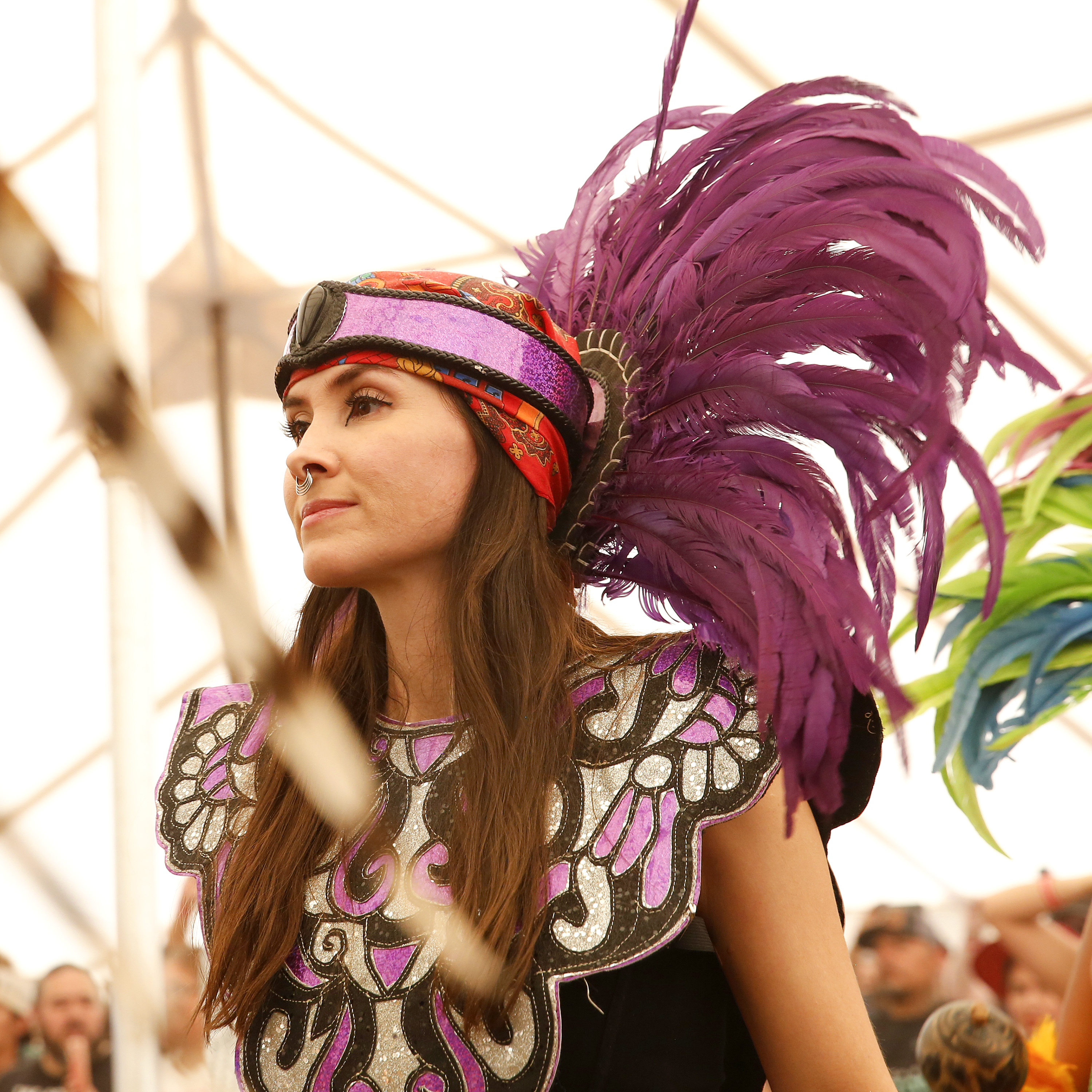 Dancer Sylvia Jean, of Austin, also talked of the devotional aspect of dancing at a powwow. “For me it’s a church and I’m praying while I’m dancing.”