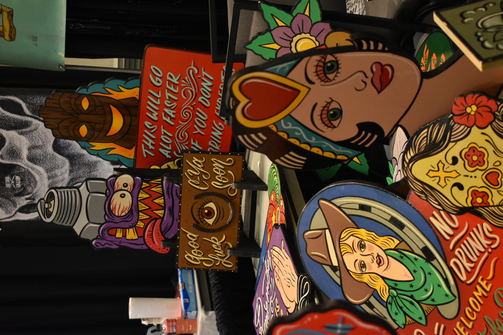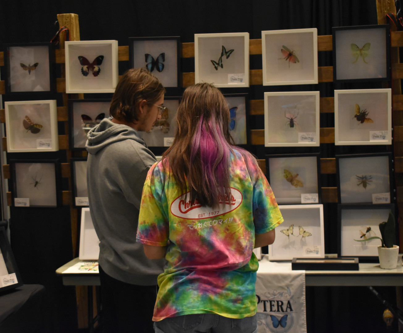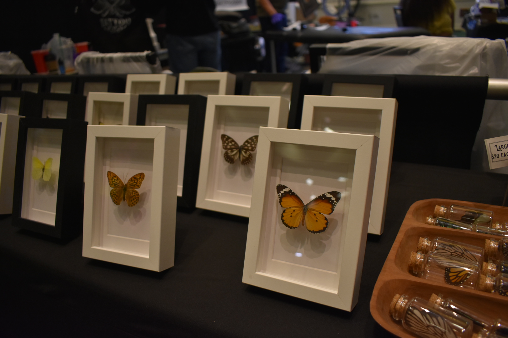 The convention not only showcased body art but physical art as well, with many tattoo artists displaying their paintings and drawings as well, allowing guests to leave with artwork for their wall. Insect taxidermy artist Pinned Ptera had a booth showcasing preserved butterflies and bugs. Denton based artist Morgan Loftin found out about the convention through her friends in the tattoo world and used it as an opportunity to display and sell her work while also taking the weekend to bond and connect with her fellow artist friends.
